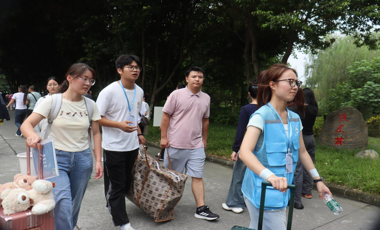 清晨7点,学院迎新志愿者早已就位。他们身着统一服装,以热情的笑容和专业的服务迎接每一位新生。从校门口到报到点,从缴费处到宿舍楼,志愿者们主动接过沉甸甸的行李,耐心解答各类问题,细致指引报到流程。有的推着行李车往返数十趟,有的为新生详细介绍校园布局,有的耐心讲解专业培养方案。他们用实际行动践行着“奉献、友爱、互助、进步”的志愿者精神,让新生初入校园就感受到学院大家庭的温暖。
