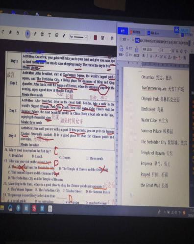 “停课不停学”,为阻断疫情向校园蔓延,教育部下发通知,要求2020年春季学期延长开学,四位支教老师按照文件要求,从2020年2月11日起便开始网上教学,备课、上课、作业样样不落,但其中也遇到了些些许许的困难,因为住在老家,信号缺乏,在家上课,似乎真的需要“找信号”;毕竟第一次当“主播”,怀着很大的热情,却发现直播间人数寥寥无几,学生的积极性似乎得不到调动;隔着网络,隔着千山万水,学生不在眼前,师生互动似乎也成为了问题……但是,这些困难,又怎能打到作为青年一代的她们,既然先天条件没有给她们优待,那便自己去创造种种天时地利人和,终于有条不紊的开展起了网上教学。