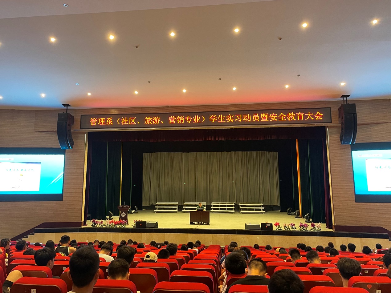 7月8日下午,管理系在大礼堂召开社区、旅游、营销专业学生实习动员暨安全教育大会。副院长吴斌、系党总支书记郭小林以及毕业班班主任、实习指导教师参加了本次会议。
