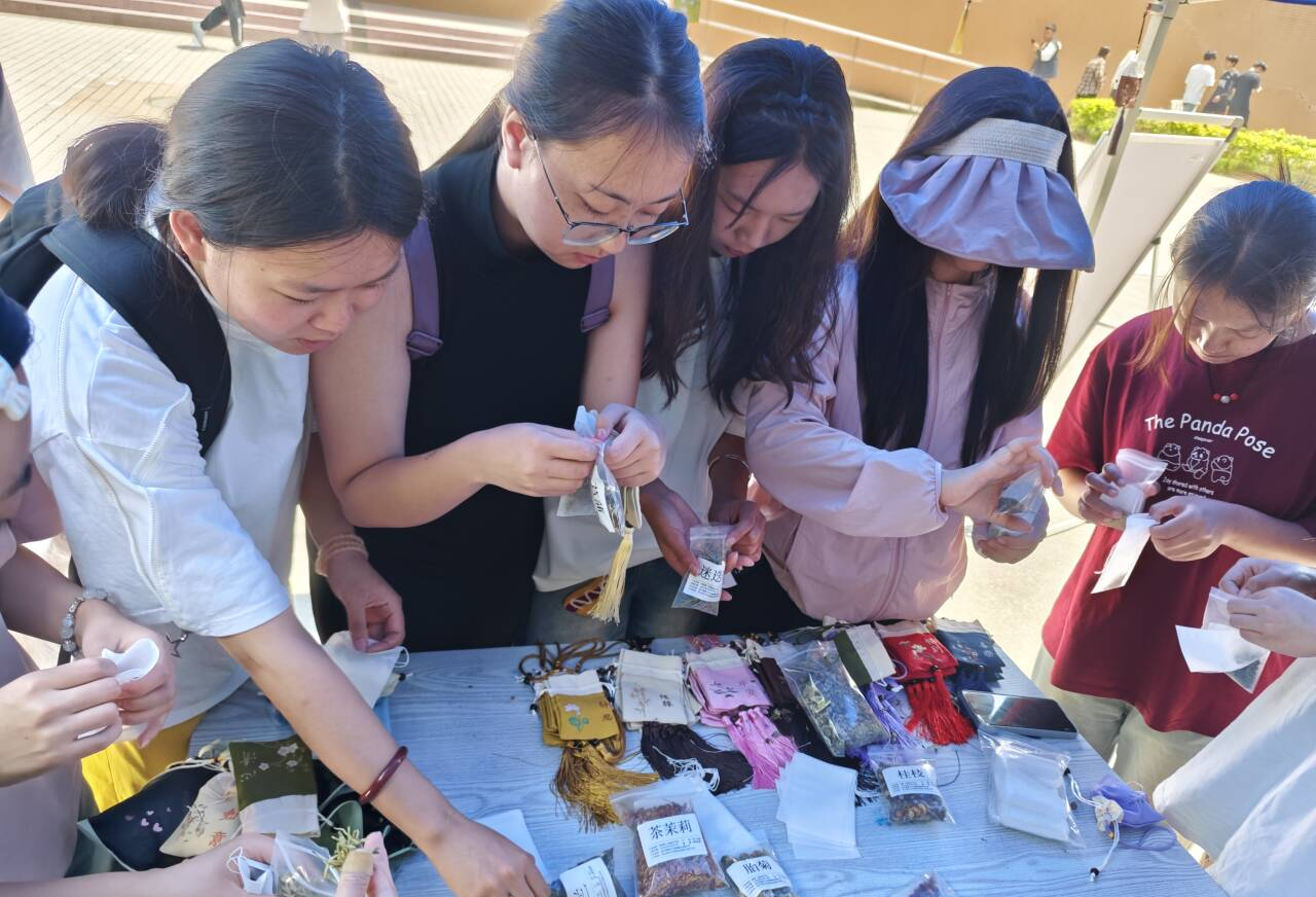 5 月 19 日下午,天佑广场变身温暖的心灵驿站,学院在此举办了一场别开生面的心理主题游园会。现场五彩斑斓的气球随风轻舞,同学们热情高涨,纷纷投入到香包制作、手串 DIY、“微光寻星” 发现好友闪光点以及扭扭棒制作等趣味活动中。指尖穿梭间,香包与手串承载着美好期许;“微光寻星” 环节,同学们真诚分享,让友谊在温暖话语中升温。这场活动不仅成为同学们释放学习压力的出口,更搭建起彼此交流合作的桥梁,让爱与温暖在校园里悄然传递。