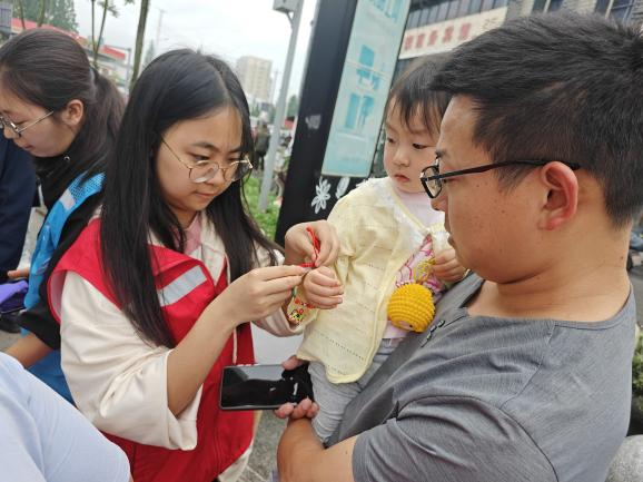 端午知识小课堂、趣味问答带居民穿越千年,深入解读屈原的爱国情怀、龙舟竞渡的激昂历史与古人驱毒避疫的生活智慧,一枚枚精致的端午主题钥匙扣、五彩绳作为文化信物,被欣喜地收入囊中,千年文脉在问答间悄然流淌、深入人心。