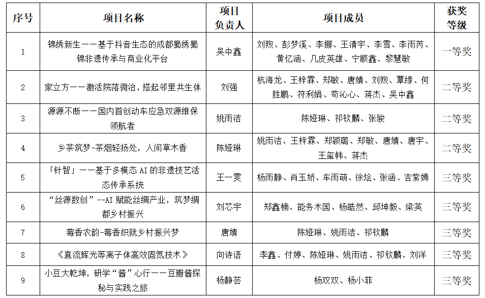 在路演答辩环节,各项目负责人依次上台,详细报告各项目主题、内容和特色等。经过激烈角逐,由吴中鑫团队的《锦绣新生——基于抖音生态的成都蜀绣蜀锦非遗传承与商业化平台》等9个项目分获一、二、三等奖。获奖项目充分展现了经管学子立足专业、服务社会的创新活力与实干精神。