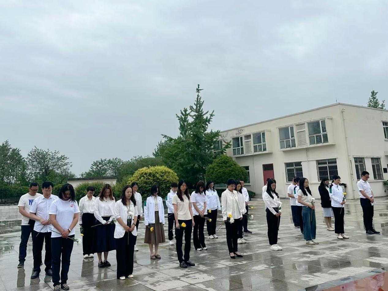 细雨寄哀思,国歌励丹心。下午13时,活动在雄壮的《义勇军进行曲》中拉开帷幕。全体党员列队肃立,齐声高唱国歌,铿锵旋律与陵园内苍松翠柏交相辉映,激荡起赓续奋斗的豪情。随后,全体人员垂首默哀,向长眠于此的革命先烈致以深切缅怀。细雨无声,浸润着每一名党员对英雄的崇敬之情。随后,由学院专职组织员王晓鹏同志领誓,全体党员面向党旗庄严宣誓,铮铮誓言响彻陵园,字字千钧叩击初心。宣誓结束后,全体党员缓步绕行纪念碑并敬献菊花,追思先烈为民族独立、人民解放事业献身的崇高精神。