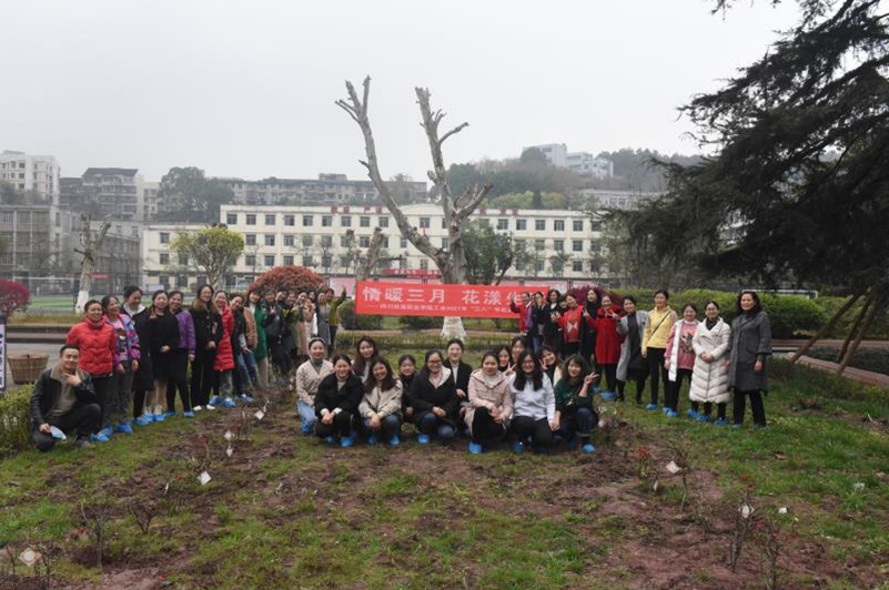 为进一步提高全校教师爱护环境和绿化意识,继续发扬艰苦奋斗的精神,在2021年“三八”妇女节到来之际,内江校区工会组织全体女职工及部分男职工在办公楼旁开展了植树活动。