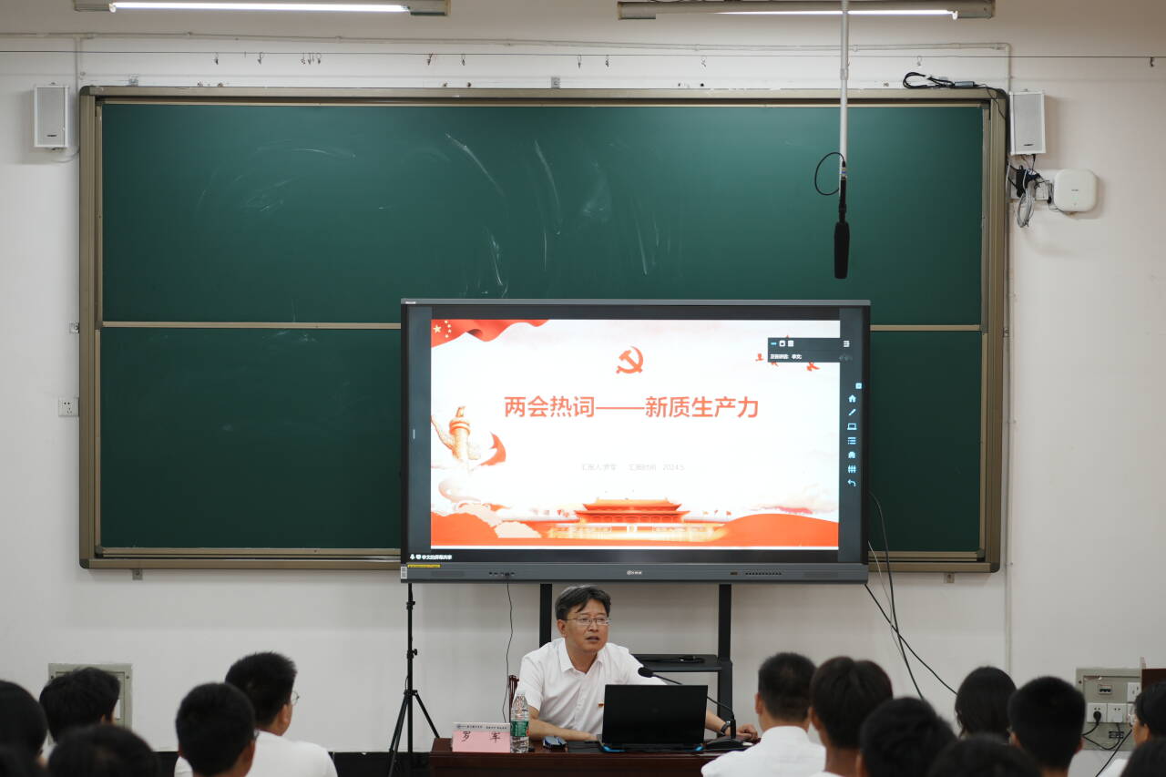 开班仪式在青春激昂的团歌声中落下帷幕。随后,罗军以《两会热词——新质生产力》为题为第五期团校培训班全体学员讲授了第一次团课。罗军以伟德国际优秀校友曾纪云成长经历讲述为导入,从新质生产力的提出、生产力新质化历史、新质生产力与中国式现代化战略等五个方面,通过具体案例和深入浅出的讲解,向同学们讲授了新质生产力的内涵及在国家发展中的重要性。讲课中,罗军结合伟德国际当前发展办学特色和学生实际,引导全体学生明确新时代职业学生在新质生产力发展中的重要角色和责任,鼓励全体学生关注国家大事,积极投身实现中国式现代化的伟大实践。