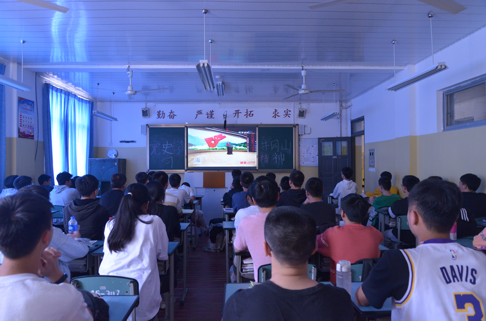《井冈山精神》以“石库门到井冈山、坚定执着追理想、实事求是闯新路、艰苦奋斗攻难关、依靠群众求胜利”五个篇章为主题,讲述了从党的“一大”至“四大”的革命斗争,在井冈山开辟“农村包围城市、武装夺取政权”的道路,创建中国第一个农村革命根据地的一个个感天动地的红色故事。班会课伊始,各班主任对各班学生作了动员讲话,阐述了党史学习教育的重要意义,然后观看《井冈山精神》党史系列记录片。观看过程中,全校同学聚精会神,一起回顾党的百年历程,重温了井冈山的烽火岁月,深切感受了党的初心和使命,每一位同学的思想和心灵上都受到了一次洗礼。全体同学纷纷表示,一定要学好党史知识,通过重温红色经典,传递红色力量,展现红色精神,在党史学习教育中坚定信念,争做时代新人。