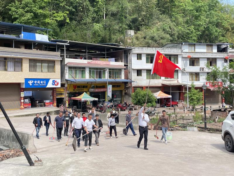 “共产党员户”标识牌颁发完毕后,玛瑙村全体党员立刻行动了起来,撸起衣袖,拿上工具,对村内大型集中安置点和民主镇场镇街道进行了集中清扫,以实际行动参与到“五清行动”工作之中,为美化乡村人居环境,献出了一份自己的力量。