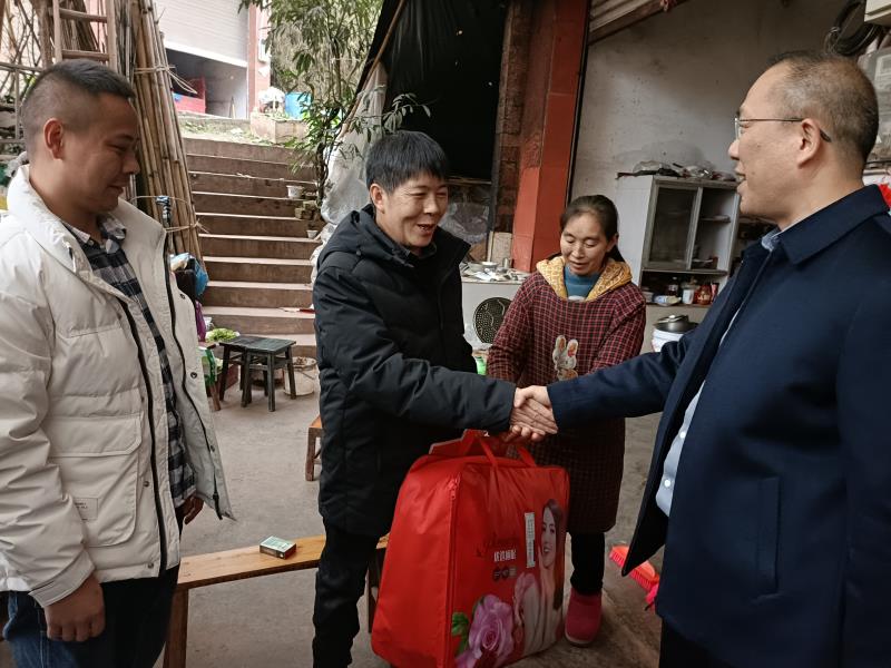 在农历新年即将到来之际,2023年1月9日至1月10日,学校党委书记贺兆轩、纪委书记池秋平等一行4人赴马边县、甘孜州开展乡村振兴帮扶工作督导调研,洽谈校企合作、看望慰问学校下派帮扶干部、开展“走基层、送温暖”活动。马边县民主镇、玛瑙村及甘孜州教育和体育局相关同志陪同调研。 1月9日,贺兆轩一行来到学校定点帮扶地马边县民主镇玛瑙村,开展“走基层、送温暖”活动,向玛瑙村监测户、困难群众和党员代表送去新春祝福和暖冬慰问品,鼓励他们要坚定信心自强不息,通过自身努力创造美好生活。