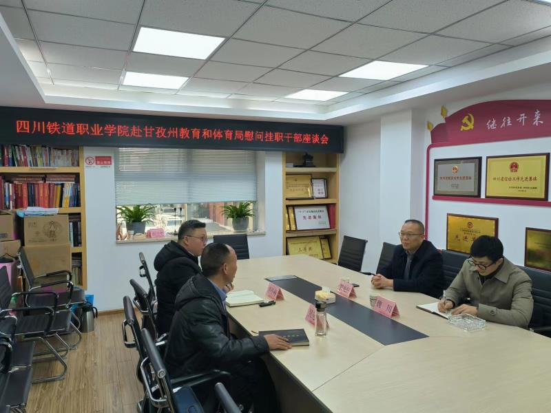 1月30日,贺兆轩一行来到甘孜州教育和体局看望慰问挂职副局长郭小林。他听取了郭小林2023年工作汇报,肯定了郭小林同志的工作成绩。他指出,一年来,郭小林同志尽职尽责奋斗在教育一线,有力提高了甘孜州高中教育质量,所帮扶的高中学校本科上线率均得到大幅提升,比2022年提升了5个百分点;有力提升了甘孜州职业教育服务水平,围绕新时代发展要求,推进了藏医学、铁道运输、光伏能源等专业人才的培养。他希望郭小林同志继续努力,围绕教育强国、交通强国开展下一步工作,为铸牢中华民族共同体意识贡献挂职干部力量。