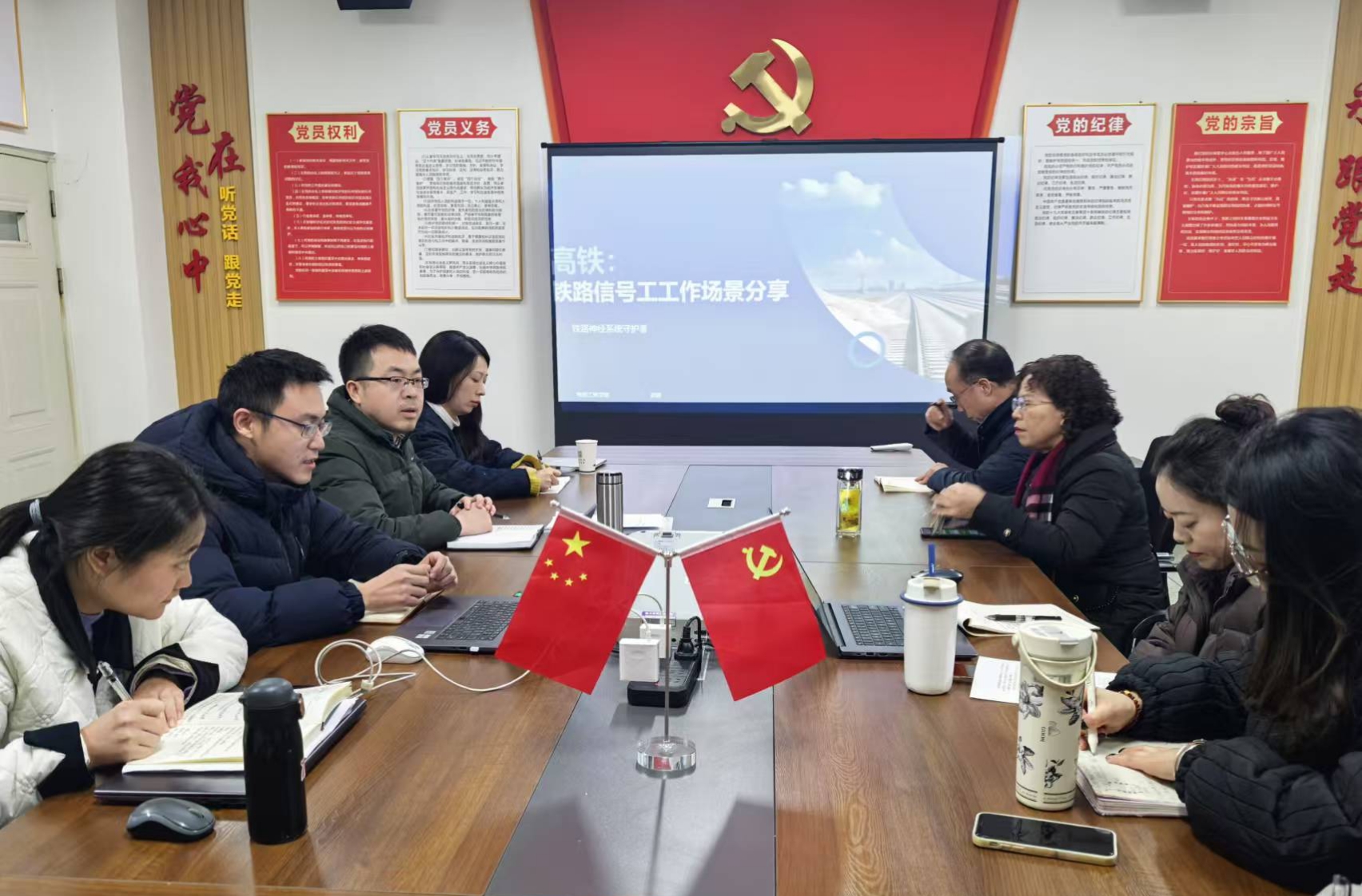 为深入贯彻落实习近平总书记对学校思政课建设的重要指示精神,“守正创新推动思政课建设内涵式发展,不断提高思政课的针对性和吸引力”,马克思主义学院与电信工程学院于2024年12月23日下午在2404会议室围绕“铁路信号工的一天”开展联合教研活动。活动由马克思主义学院副院长严涛主持。