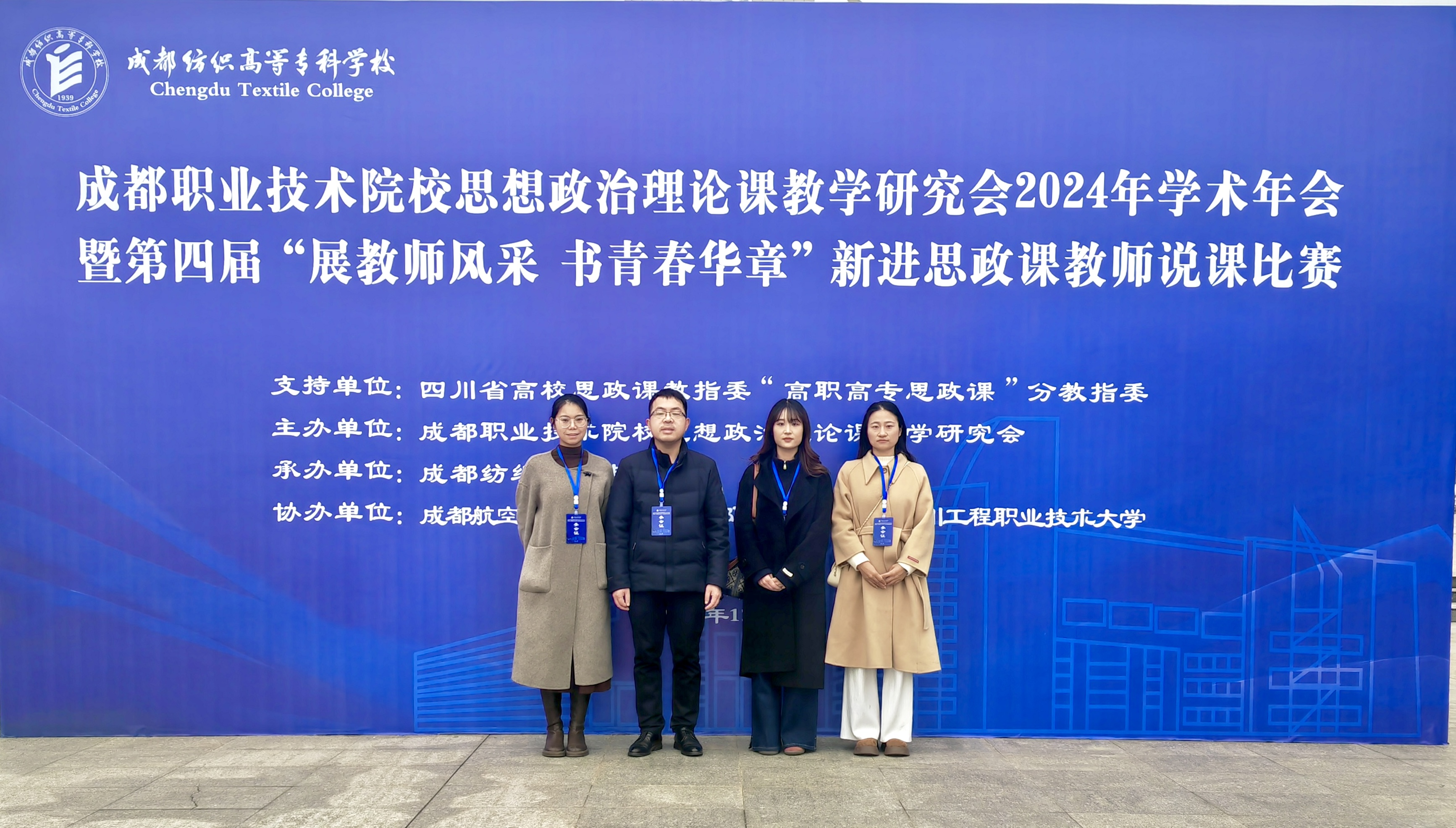 为深入学习贯彻党的二十届三中全会和全国教育大会精神,推进党的二十届三中全会和全国教育大会精神融入思想政治理论课教育教学和习近平新时代中国特色社会主义思想“进教材、进课堂、进头脑”。2024年12月20日至12月21日,成都职业技术院校思想政治理论课教学研究会2024年学术年会暨第四届“展教师风采 书青春华章”新进思政课教师说课比赛在成都召开,本次年会由成都职业技术院校思想政治理论课教学研究会主办,成都纺织高等专科学校承办,成都航空职业技术学院、成都职业技术学院、四川工程职业技术大学协办。来自全省28所高职高专院校的100余名专家和教师参加了本次年会。在伟德国际马克思主义学院副院长严涛带领下,思政课教师姚成艳、夏燕、代洪艳参会。