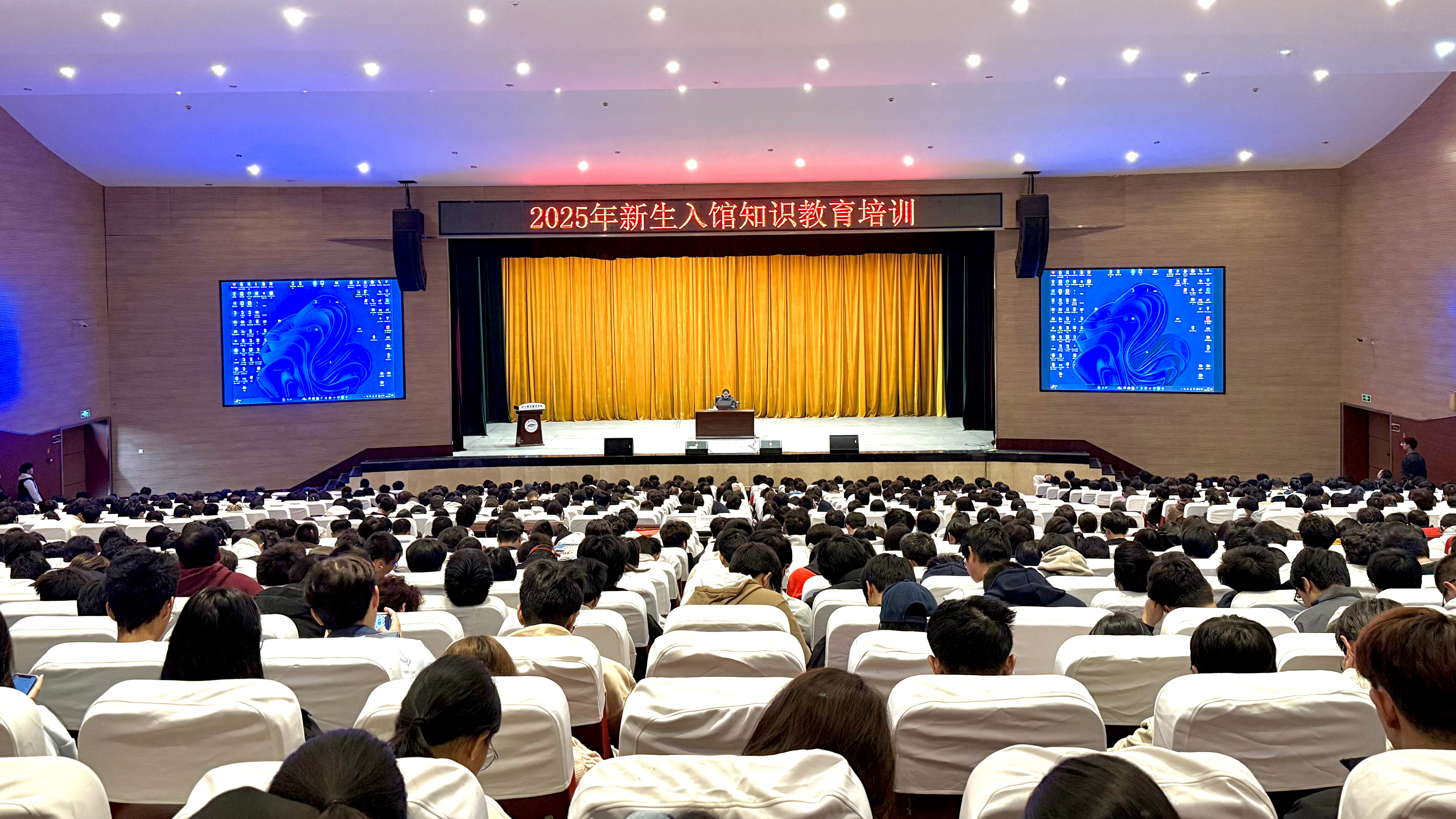 为帮助新生快速熟悉图书馆资源与服务,提升新生信息素养能力,11月3日下午,图书馆在学校大礼堂组织开展2025级新生入馆知识教育培训,各二级学院新生1200余人参加本次活动。
