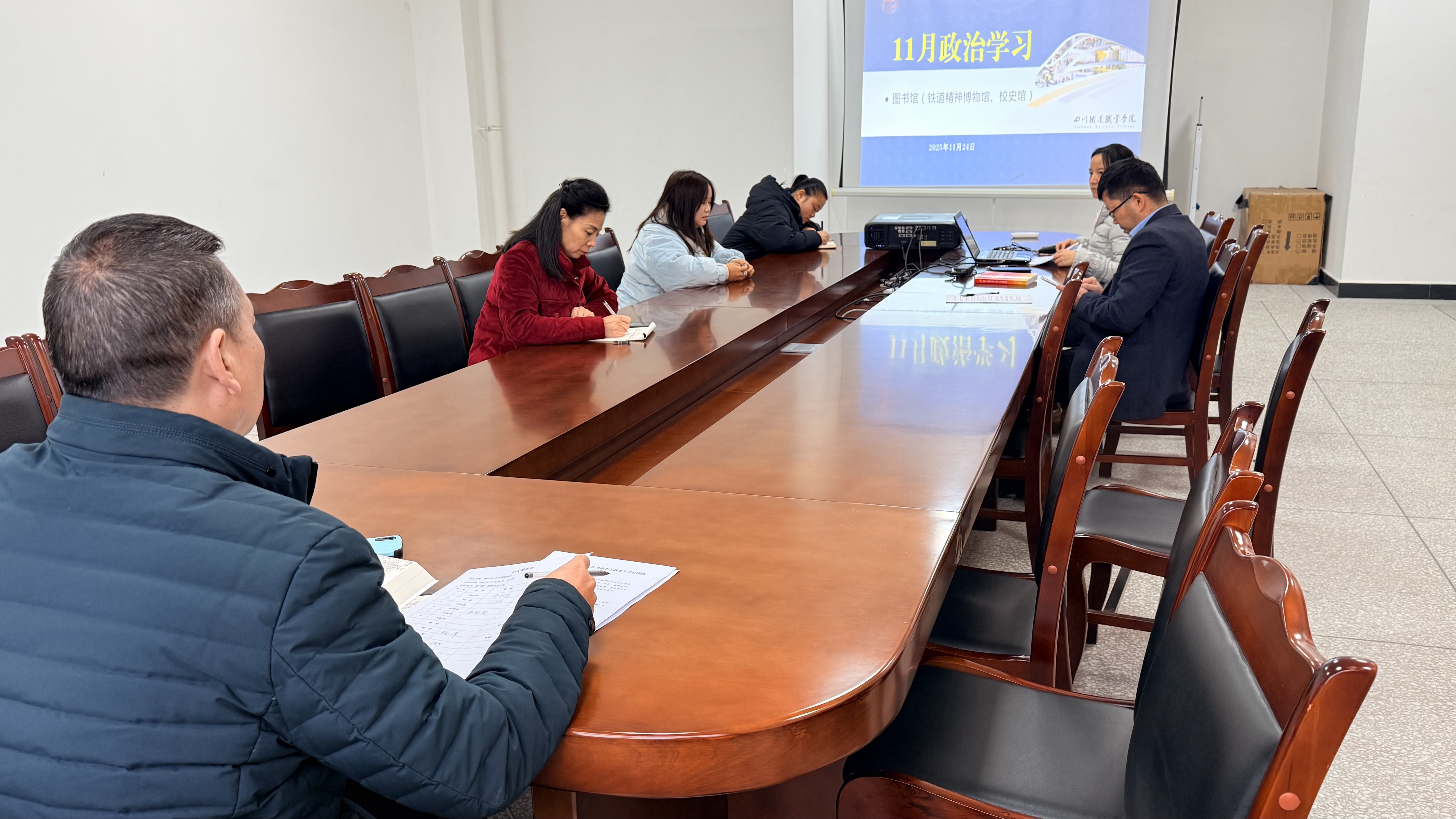 为深入贯彻落实习近平新时代中国特色社会主义思想,深刻领会党的二十届四中全会精神,加强提升全馆工作人员政治理论素养和业务能力,11月24日,图书馆组织部门全体成员开展11月政治学习,副馆长傅永华主持会议。