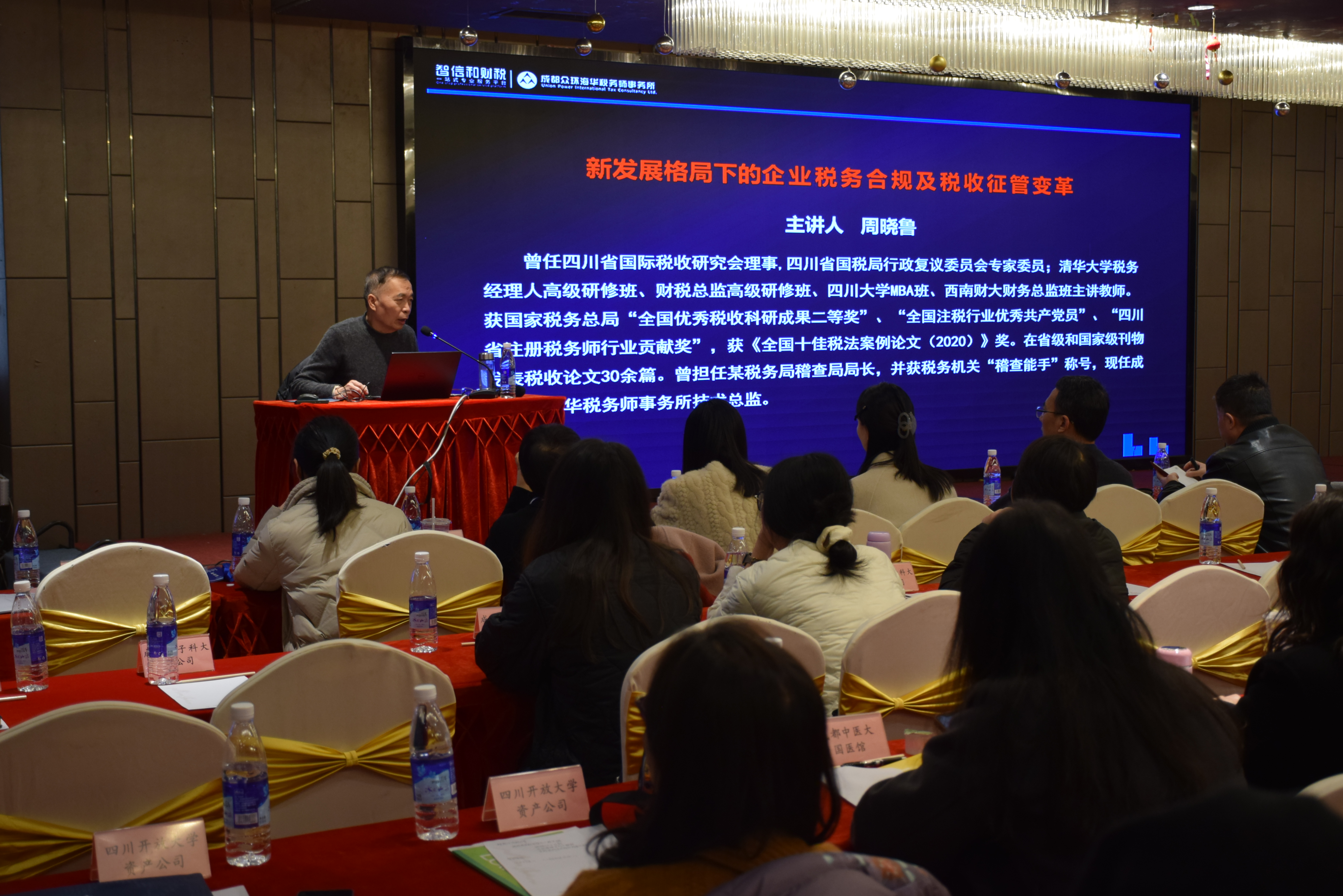 会上,西南交大科技园管理有限责任公司董事长康凯宁,就《科技成果转化难的四川解决方案》给大家做了一场丰富且生动的培训讲解,他从科技成果转化难的三道关隘入手,深入浅出的讲解了“科技小岗村”改革的艰难之路,并以此一一推出科技成果转化难的完整解决方案,让与会者清晰的认识到当前本企业在科技成果转化方面所面临的急迫点,为与会企业下一步科技成果成功转化工作指明方向。四川省国际税收研究会理事周晓鲁,以《新发展格局下的企业税务合规及税收征管变革》为引,逐一讲解了什么是税务合规风险、税务合规风险点具体有哪些、企业为什么必须进行税务合规管理、企业税务合规管理的实现途径等热点、难点问题,同时,还以真实税务案例提出问题,引导与会者思考和解答,让与会者抓税务合规工作的思路更加清晰、方向更加明确、流程更加熟悉、措施更加有力。