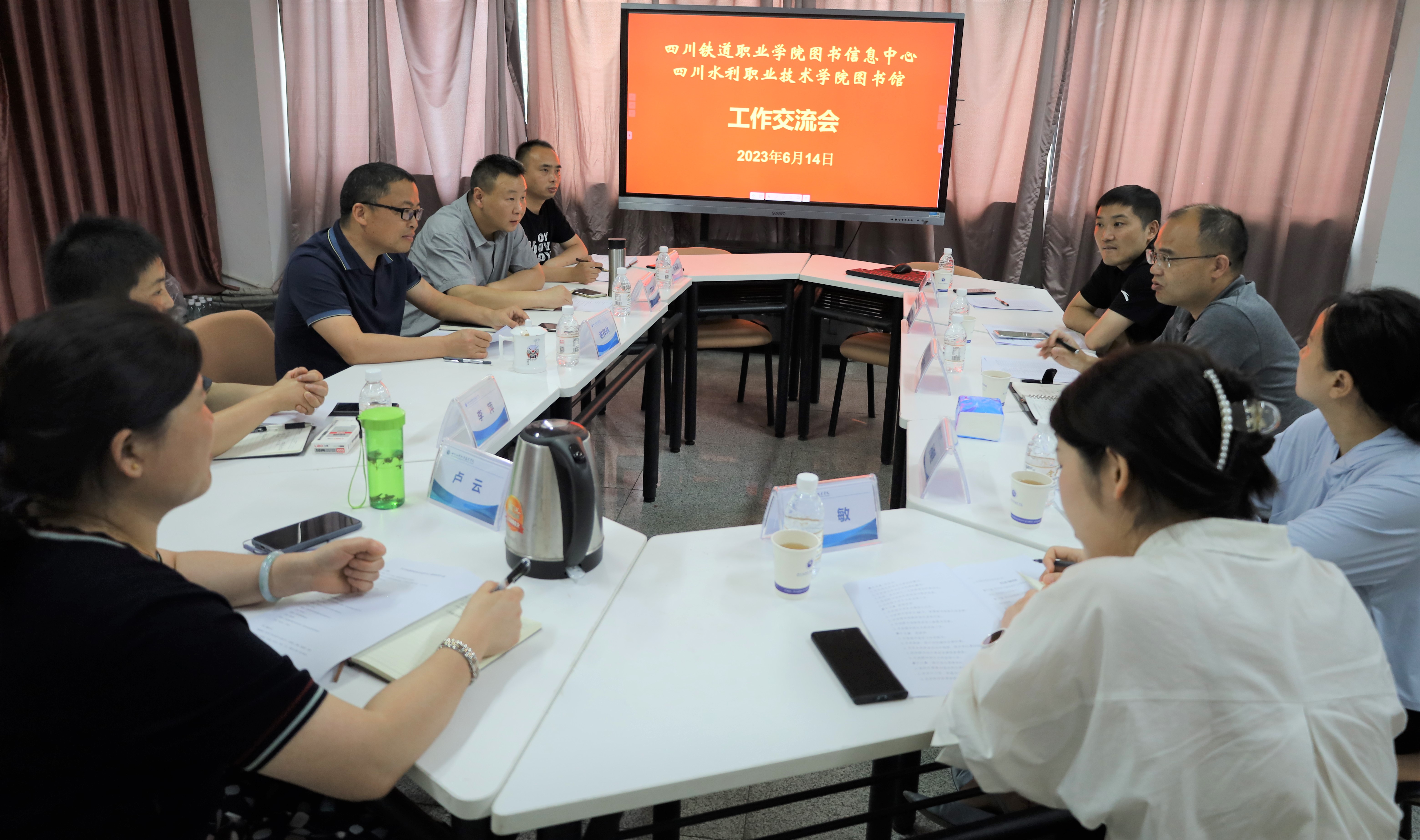6月14日下午,图书信息中心副主任何中华一行5人赴四川水利职业技术学院图书馆交流学习。首先,水利职院图书馆馆长谢祥林的带领下参观了校园文化建设和图书馆。随后,谢馆长、支部书记王圣戎及何宗亮、李萍、卢云等参加了交流座谈会。
