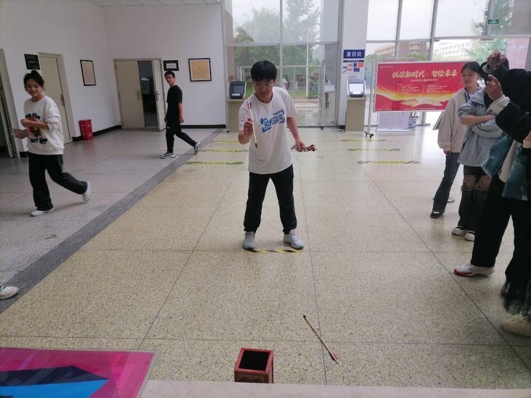 在“‘诗’不我待”环节将同学们带入了一场诗意的时光旅行,熟悉又陌生的诗句激发了大家对古典诗词的记忆与赏析。这一环节让同学们重拾对诗词的热爱与欣赏。最后的“箭影逐壶”关卡,则是对大家手眼协调以及力量控制能力的终极考验。