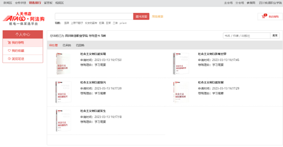 4、我的荐购:【个人中心】→【我的荐购】中可查看到所有的荐购书目,及图书馆的采纳情况。