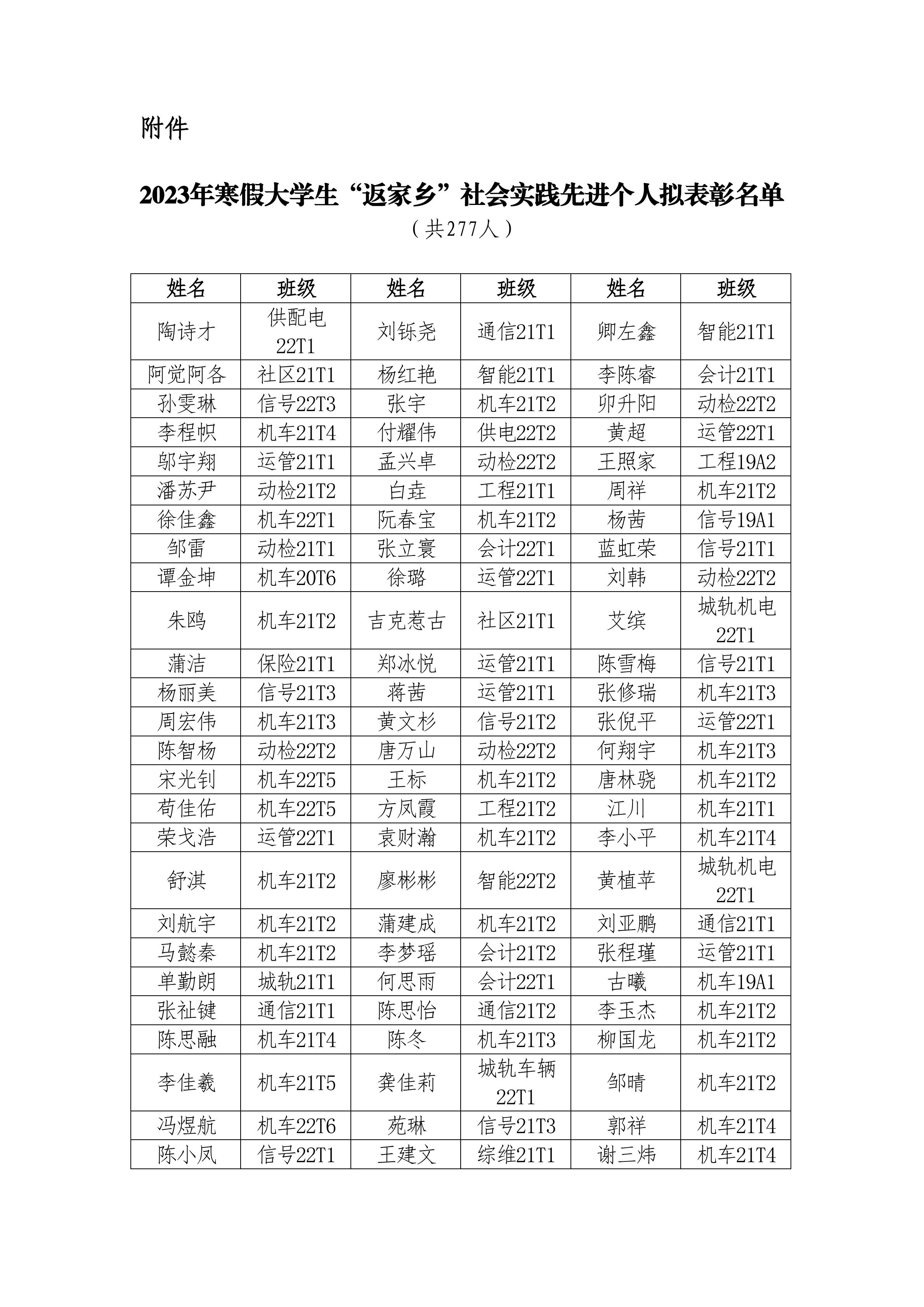 关于2023年寒假大学生“返家乡”社会实践先进个人评选结果的公示