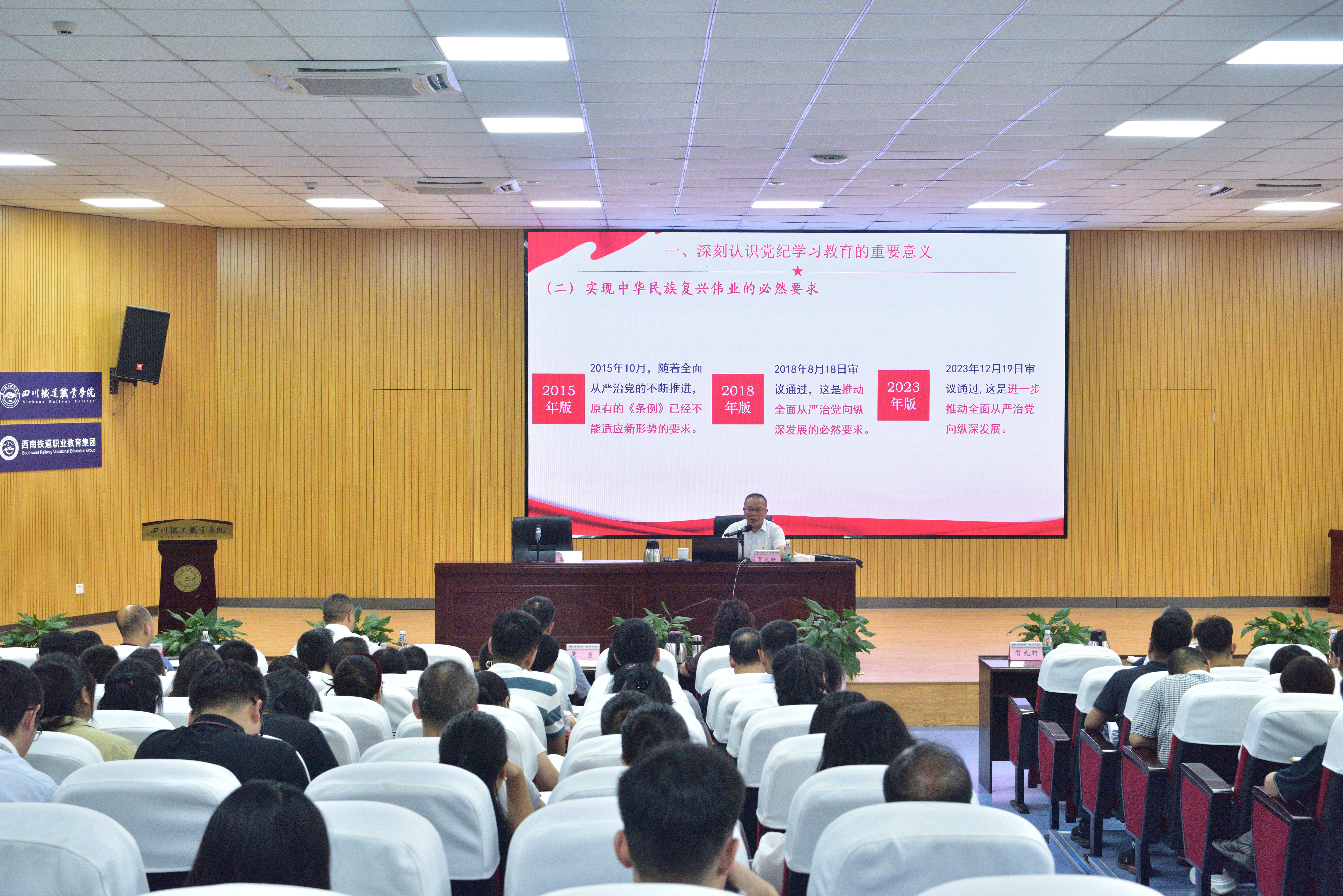 按照省委党纪学习教育工作要求和学校党纪学习教育工作安排,6月17日下午,党委书记贺兆轩以《铭“纪”于心,守“纪”于行——以严明纪律保障学校高质量发展》为题讲授纪律党课。全体校领导、中层干部、部门(单位)内设机构负责人、专职组织员、二级党组织纪检委员和基层党支部书记聆听了党课。