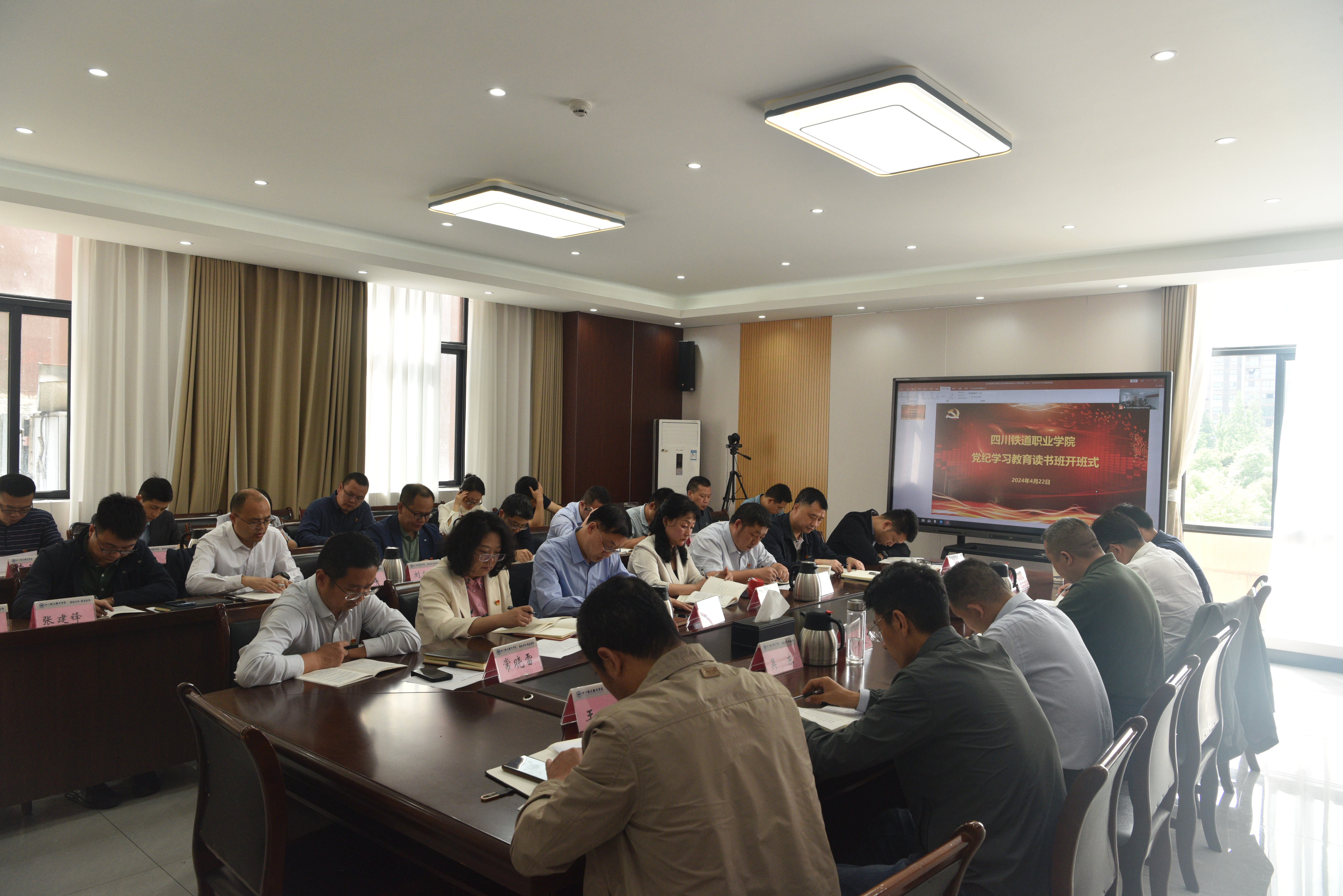 根据党纪学习教育工作安排,4月22日至24日,学校举办党纪学习教育读书班,读书班采用个人自学、集体研讨、领导领学、专家专题辅导等形式进行。学校领导、全体中层干部参加读书班。