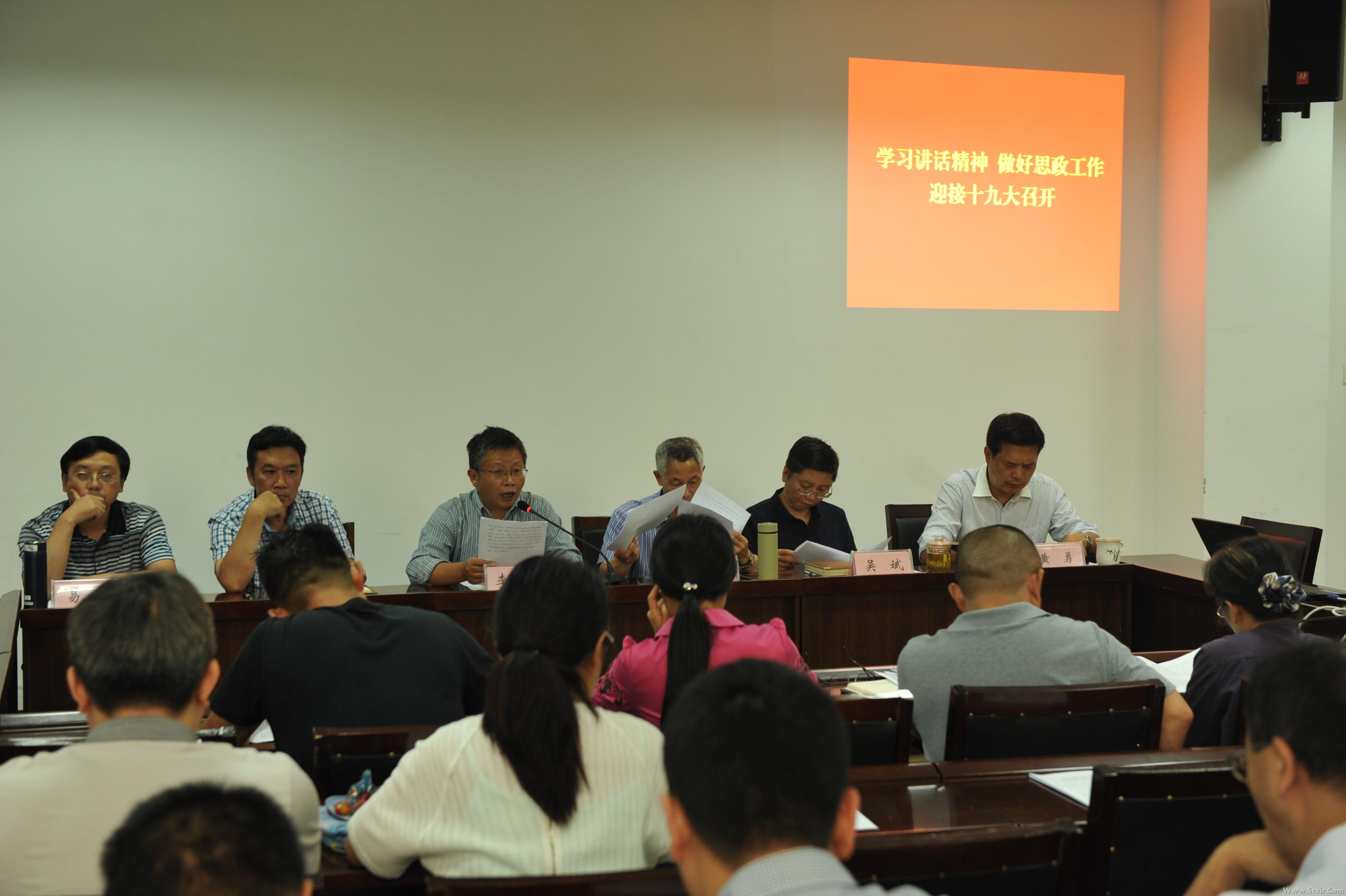 会议集中学习了习近平总书记726日的讲话精神,学习了教育部部长陈宝生的文章《切实推动高校思想政治工作创新发展》和《伟大时代需要弘扬黄大年精神》。黄大年同志的感人事迹激发与会人员以更饱满的热情投入到学院的改革发展中,积极迎接党的十九大的胜利召开。