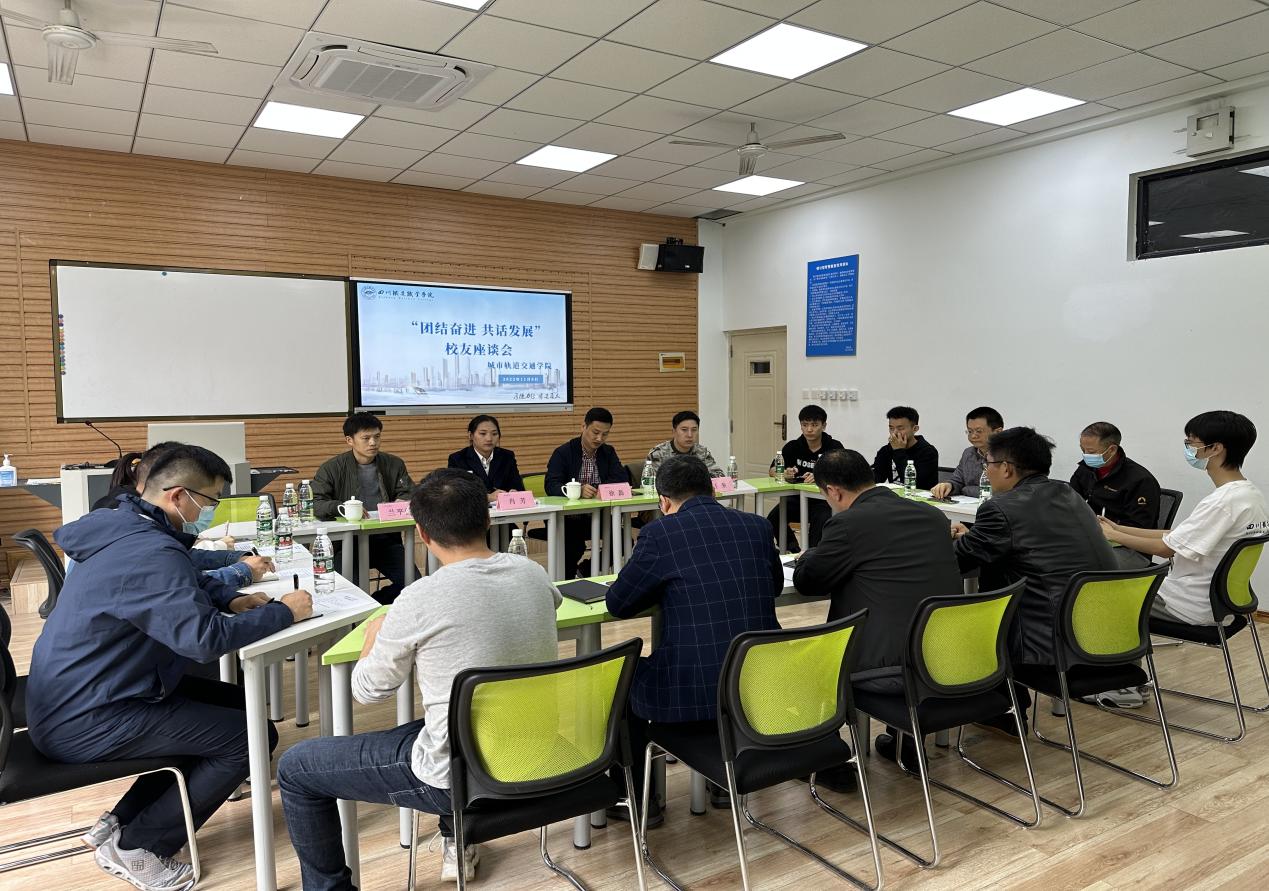 下午,城市轨道交通学院邀请优秀校友们在1号教学楼1211教室举行“团结奋进,共话发展”校友座谈会,学校党委副书记刘昊君同志、城市轨道交通学院党政负责人、教师代表、学生代表出席座谈会。