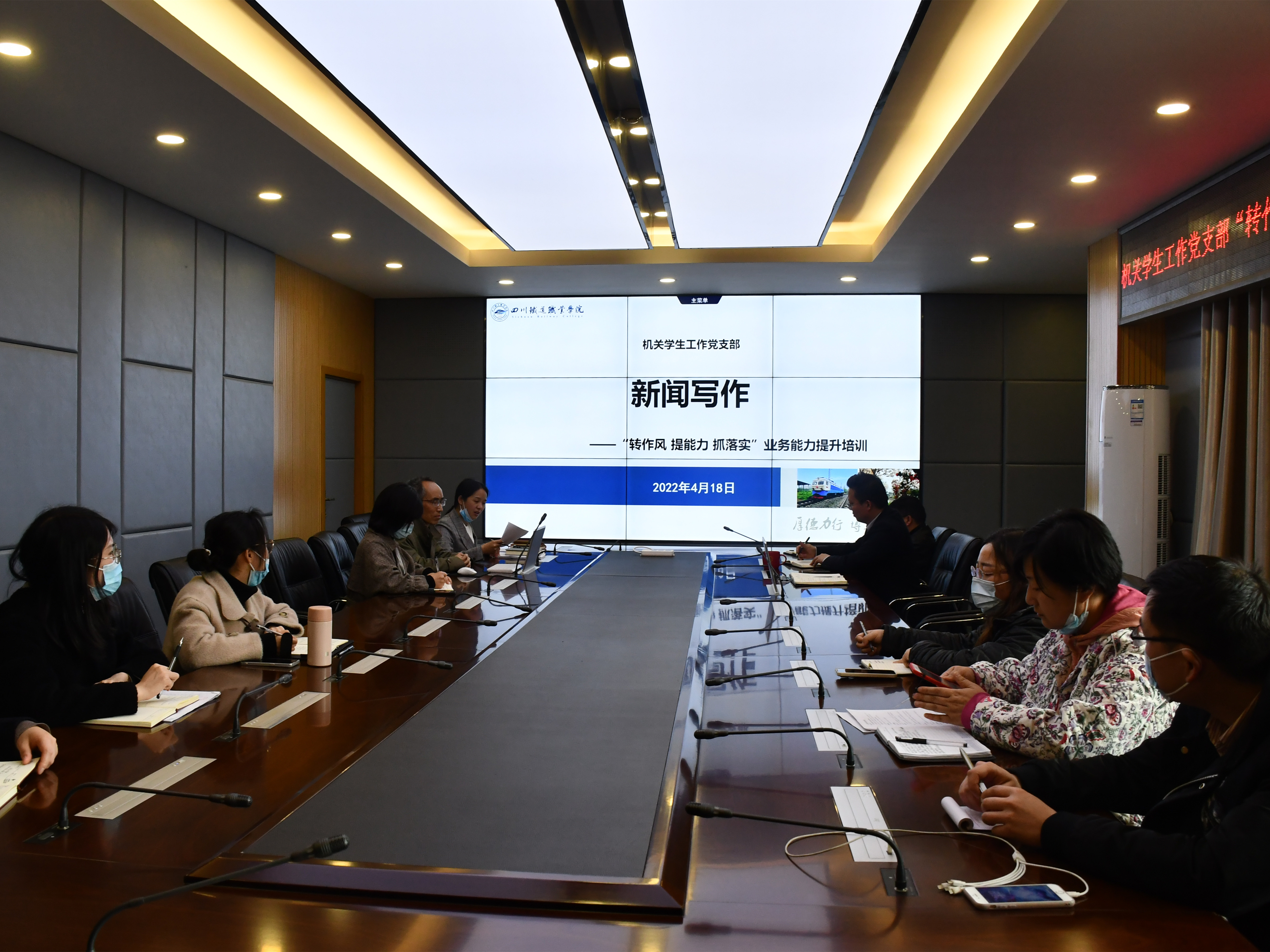 4月18日下午,机关学生工作党支部组织开展新闻写作培训讲座,图书信息中心王小玉老师应邀进行培训指导,学生处、就业处、校团委全体工作人员参加培训。