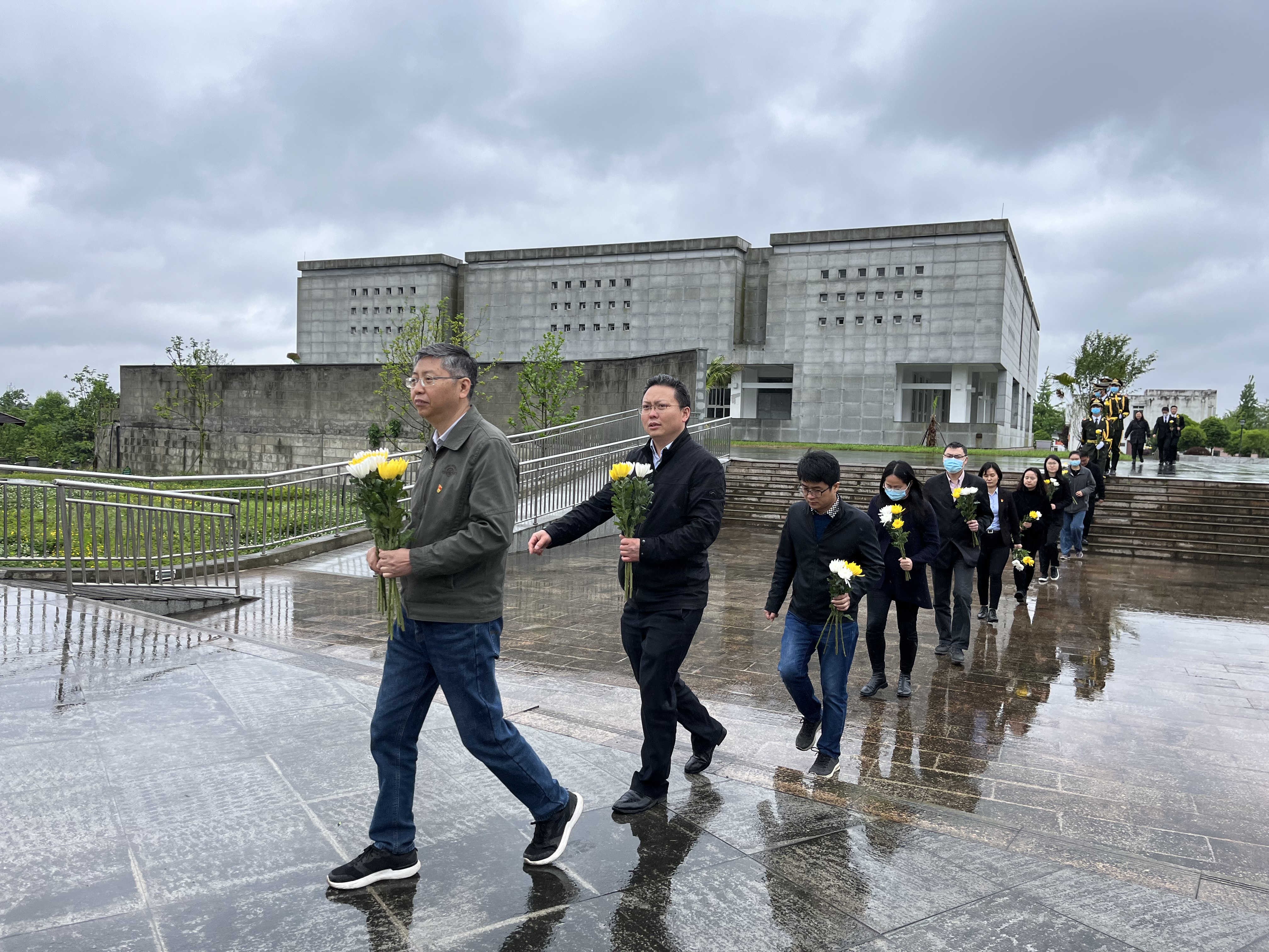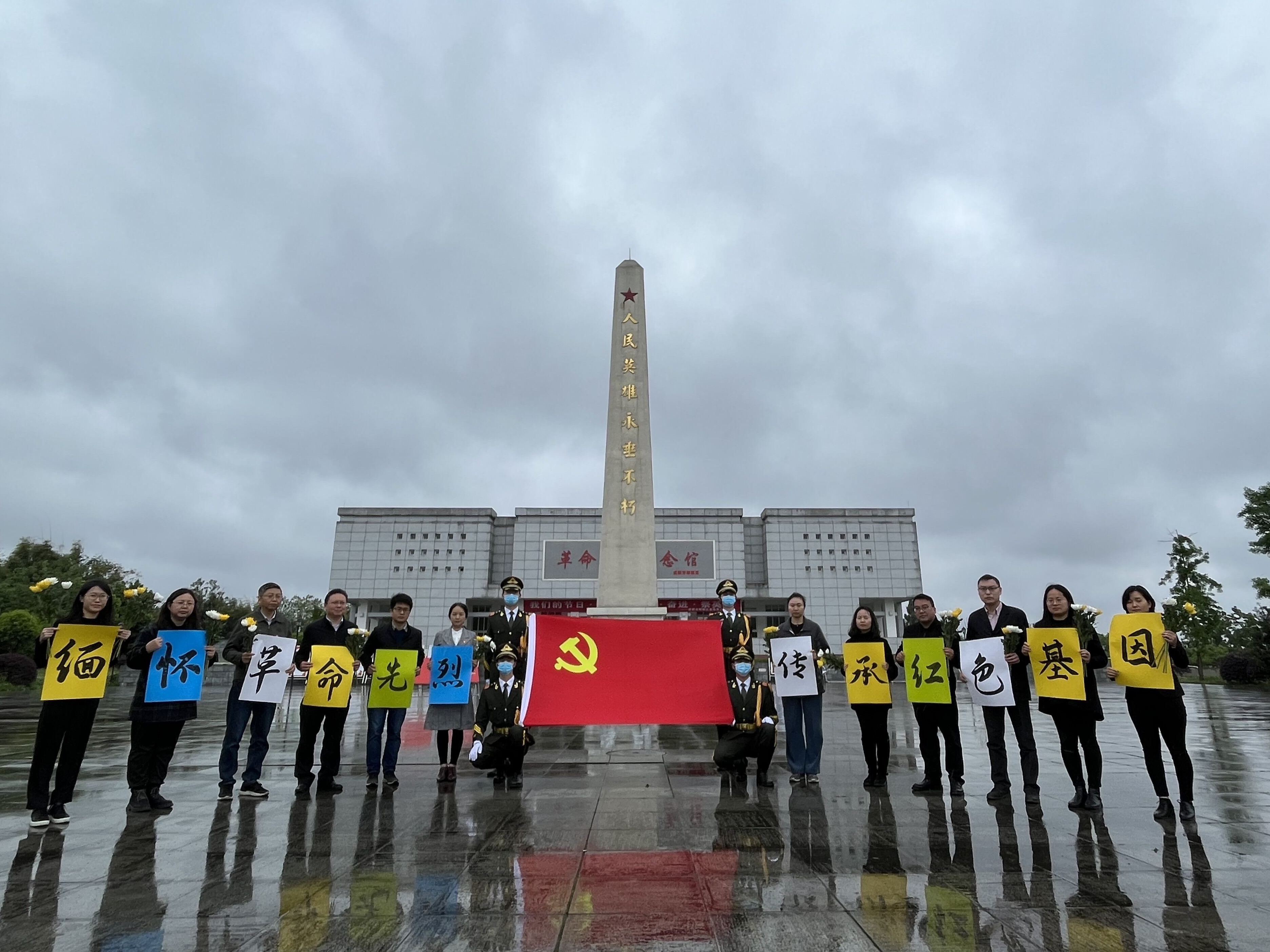 怀着对革命先烈们无比的敬意和无限的哀思,在庄严肃穆的纪念碑前,举行了悼念仪式。全体成员鞠躬致敬并向革命烈士默哀,在高耸的纪念碑前重温入党誓词,向为革命而牺牲的烈士表达崇高的敬意。仪式后,全体人员瞻仰了烈士墓区并献花,进入革命烈士纪念馆学习先烈事迹,进一步感受了革命先辈的光荣事迹和坚定信仰,接受了一次深刻的党史教育。