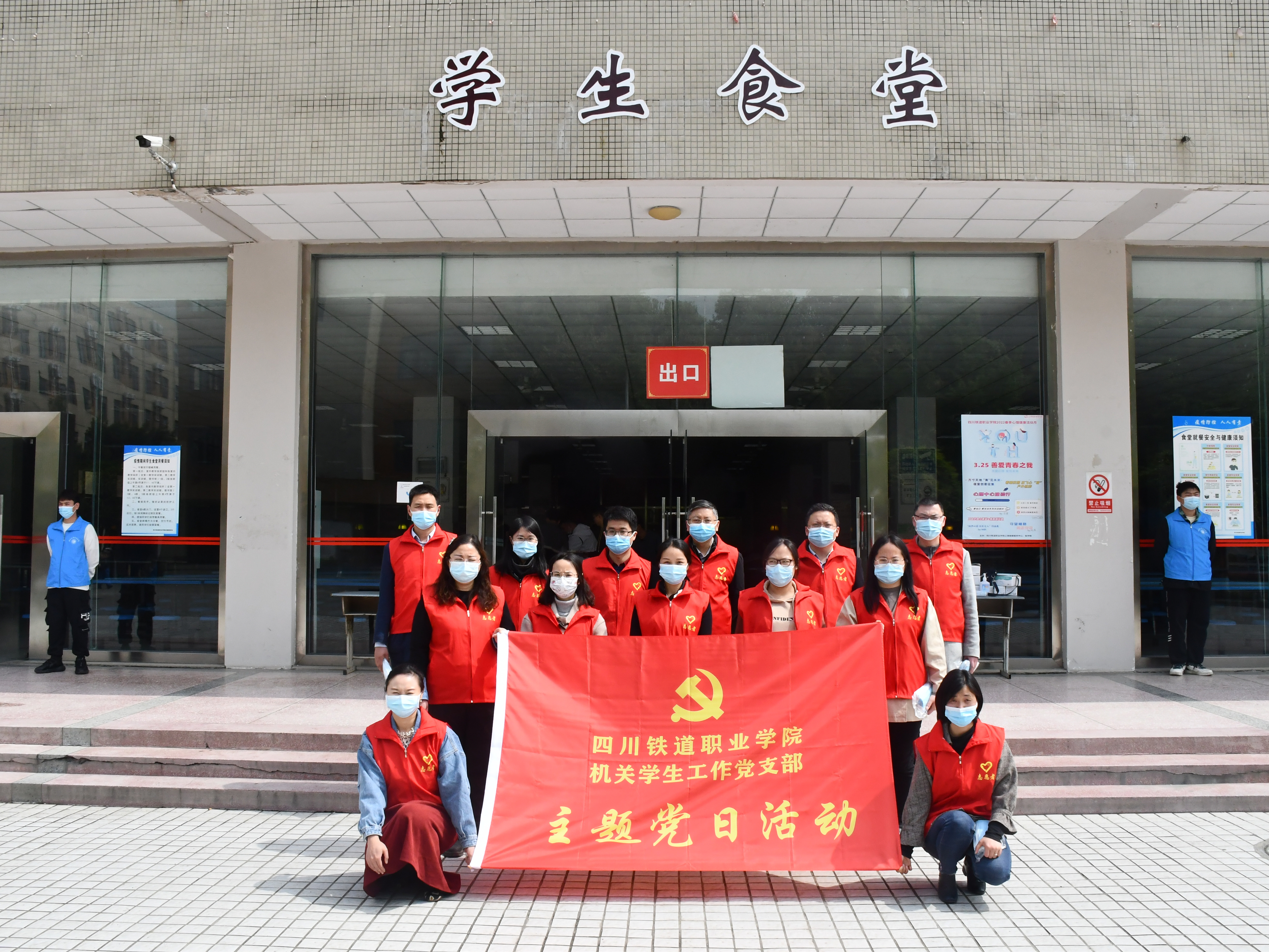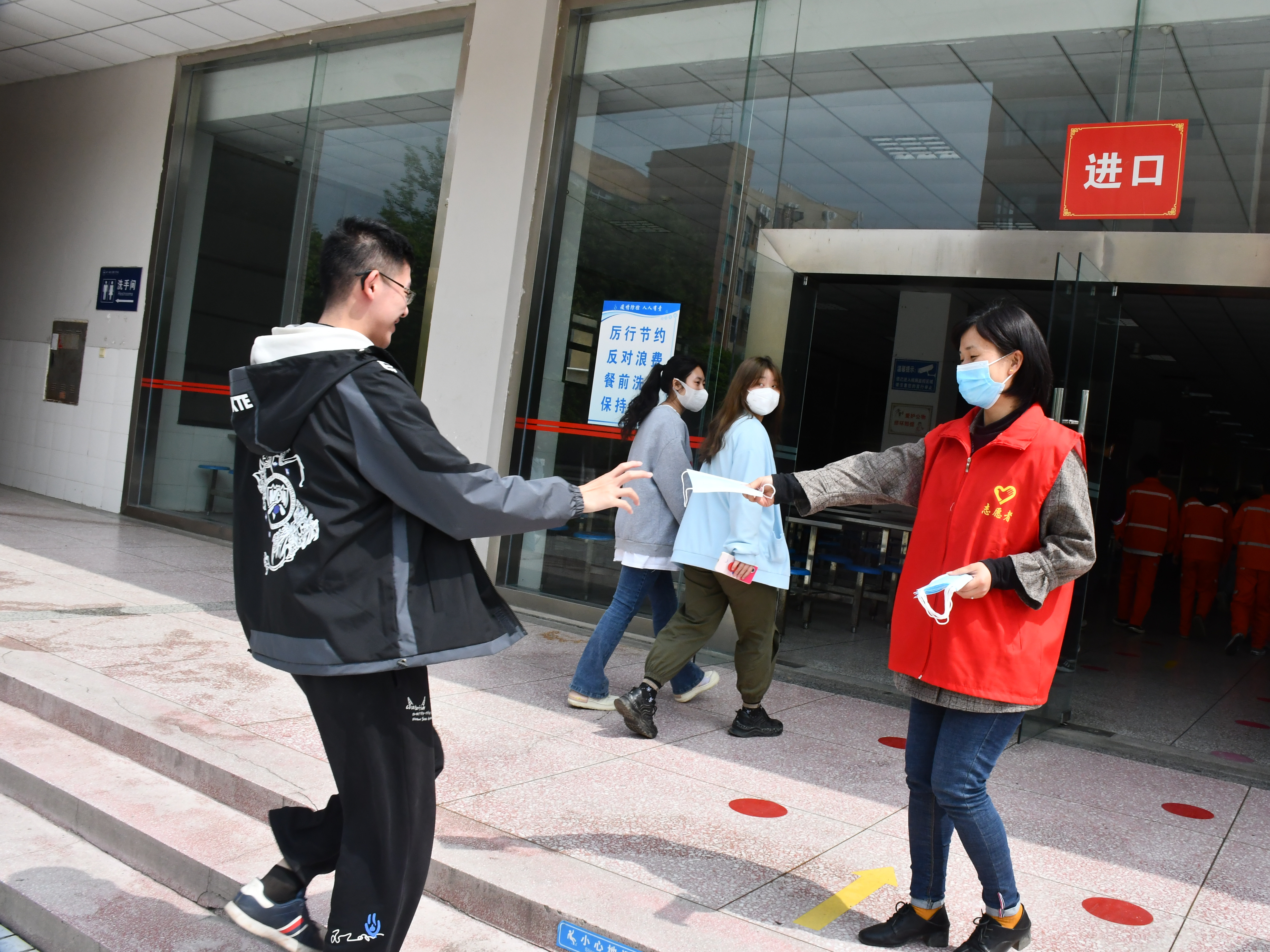 活动过程中,党支部的志愿者们在食堂出入口、公寓出入口设立值班点提醒大家带好口罩,做好基础防护,并向未携带口罩的同学发放口罩,引导广大师生争当自觉佩戴口罩的“践行者”、“监督者”和“宣传者”。