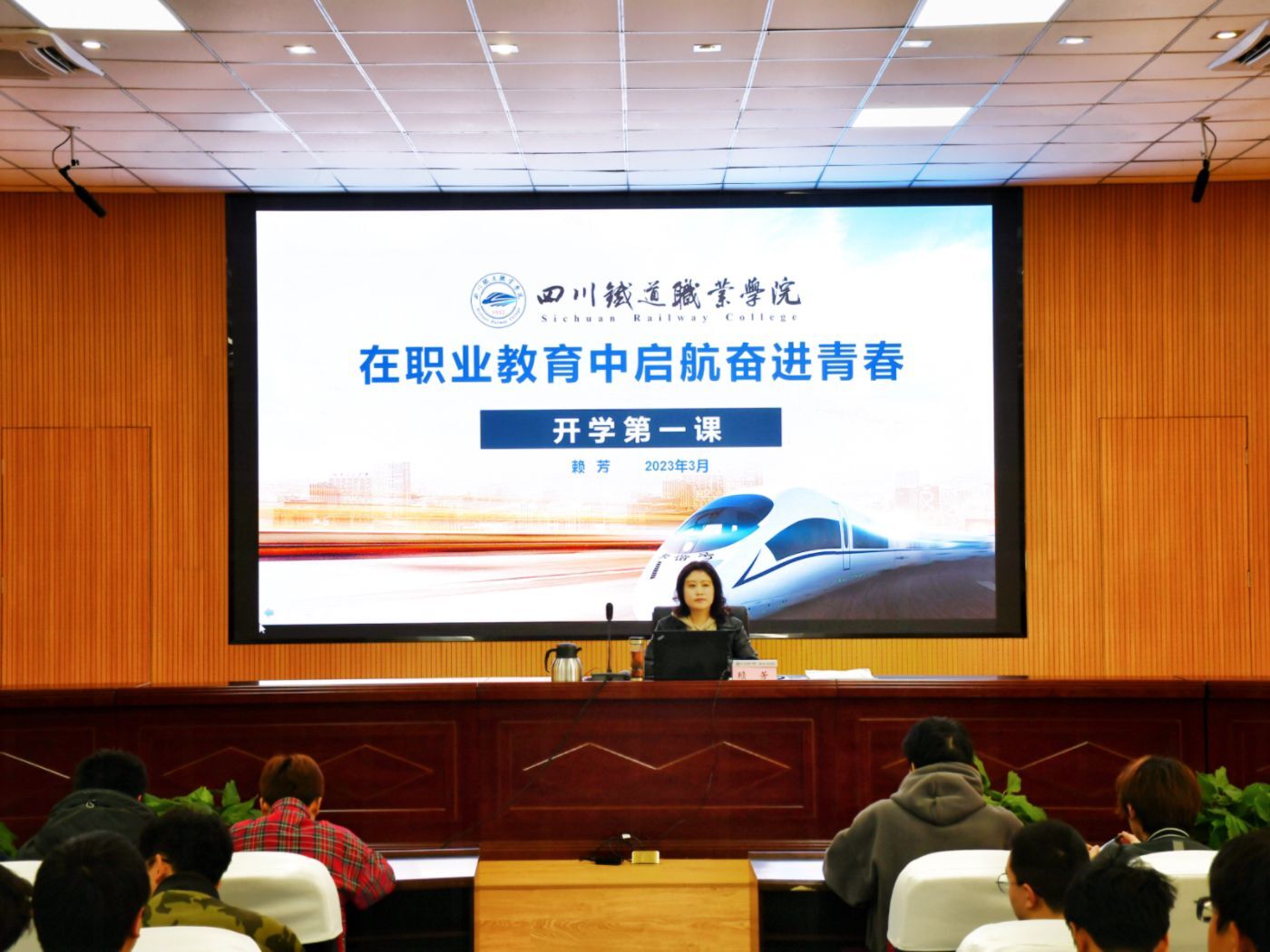 为深入贯彻习近平新时代中国特色社会主义思想,让党的二十大精神在青年学生中落地生根,3月6日下午在成都校区学术报告厅,校长赖芳以《在职业教育中起航奋进青春》为题,通过线上线下相融合的形式,为全体在校生讲授一堂内涵丰富、启示深远的“开学第一课”。