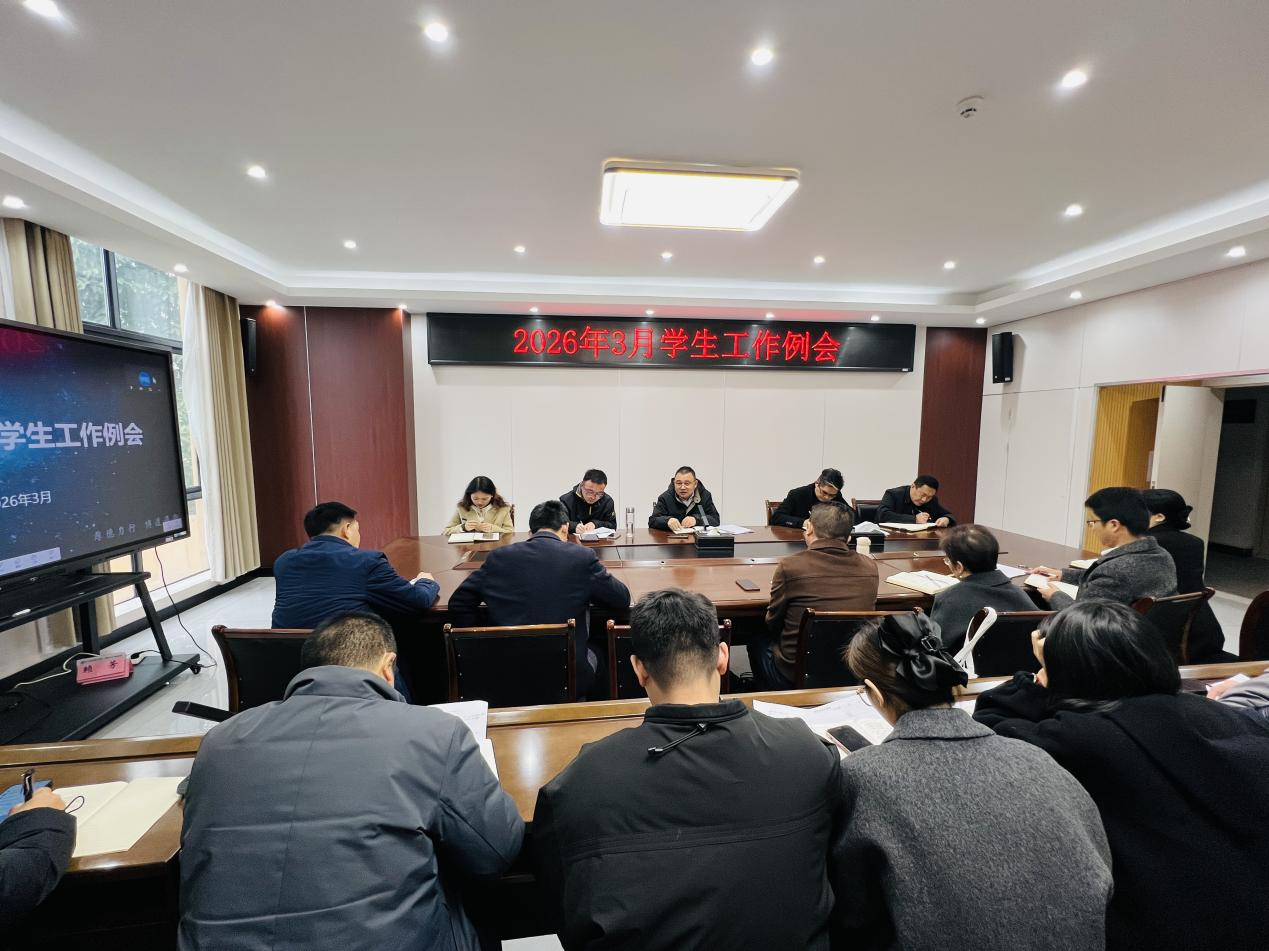 春启新程,实干为要。3月2日上午,伟德国际2026年春季学期第一次学生工作例会在行政楼第三会议室召开。会议全面总结新学期开学以来学生工作推进情况,系统部署下一阶段重点任务,为新学期学生工作高质量开展筑牢基础。学校党委委员、副校长代学灵出席会议并作总结讲话。党委学生工作部、校团委相关负责同志及内设机构负责人,各二级学院、内江校区党总支书记(副书记),驻校干部,全体辅导员参加会议。会议由党委学生工作部部长王文杰主持。