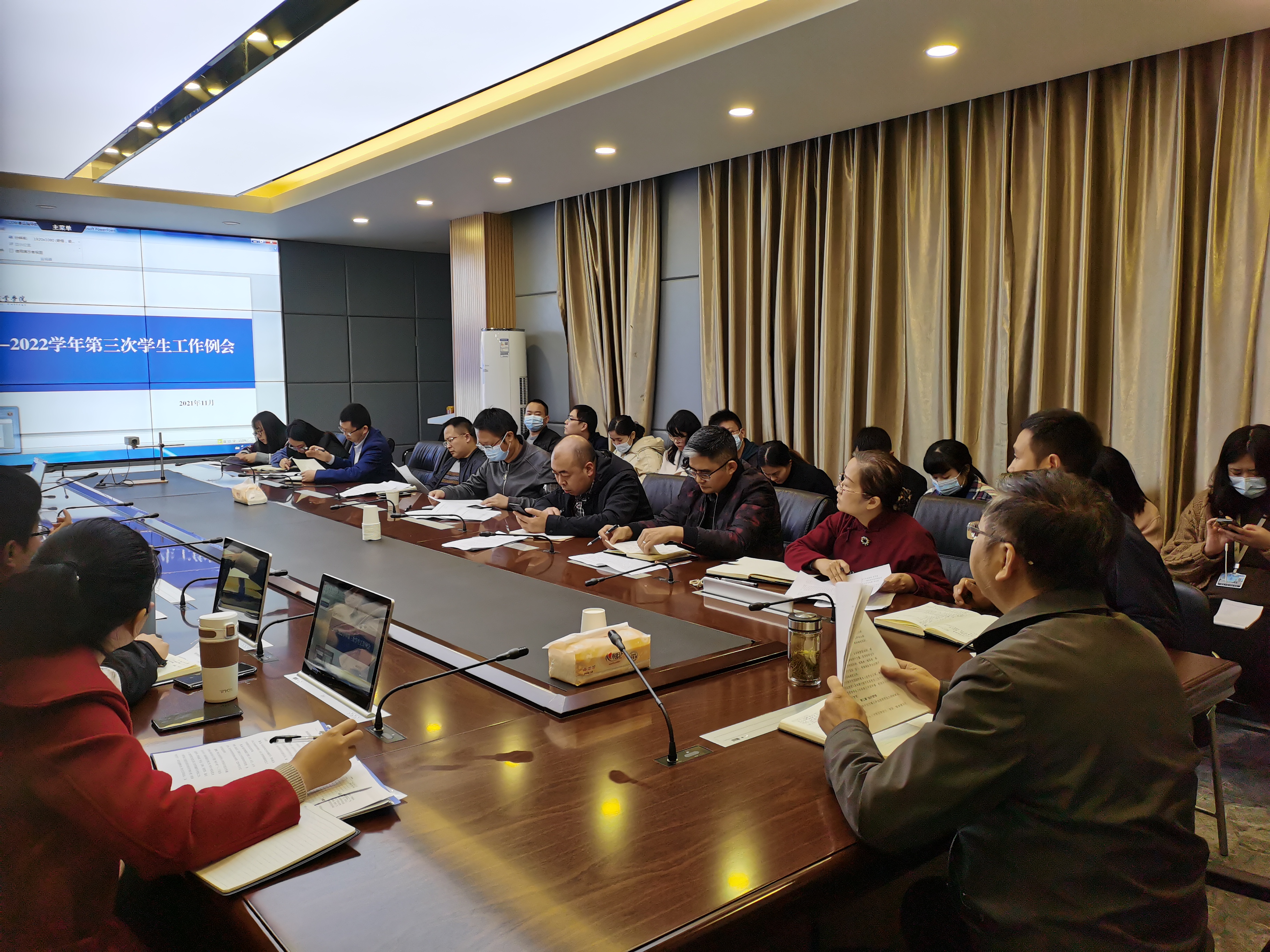 11月4日上午,吴斌副校长主持召开本学期第3次学生工作例会。党委学生工作部相关负责同志,各二级学院、内江校区管委会党总支书记,学生处、校团委相关工作人员,全体辅导员参加了此次会议。