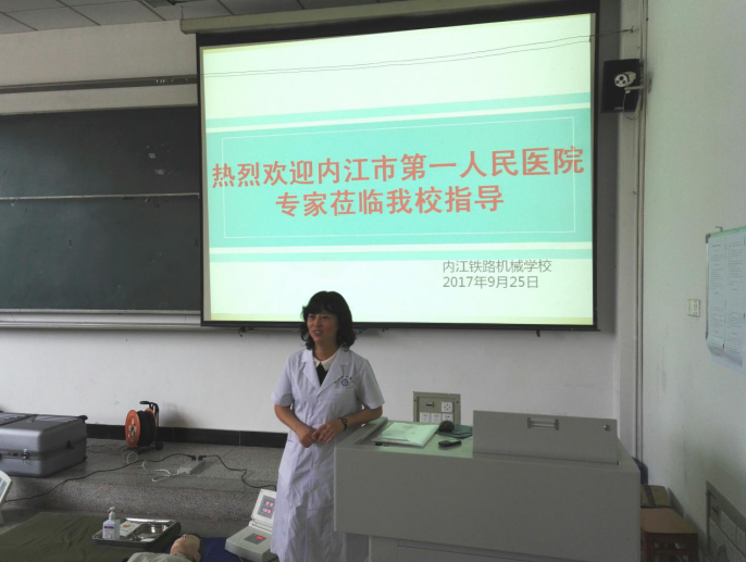 2017年9月26日下午3时,受内江校区教务处邀请,内江市第一人民医院内二科党支部书记、护理部副主任石兵等一行三人对内江校区教师、生活辅导员开展心肺复苏术(CPR)专项技能培训。石主任一行对心肺复苏术的必要性、标准的操作流程进行了耐心细致的讲解,现场示范急救动作,手把手指导老师们掌握操作要领。