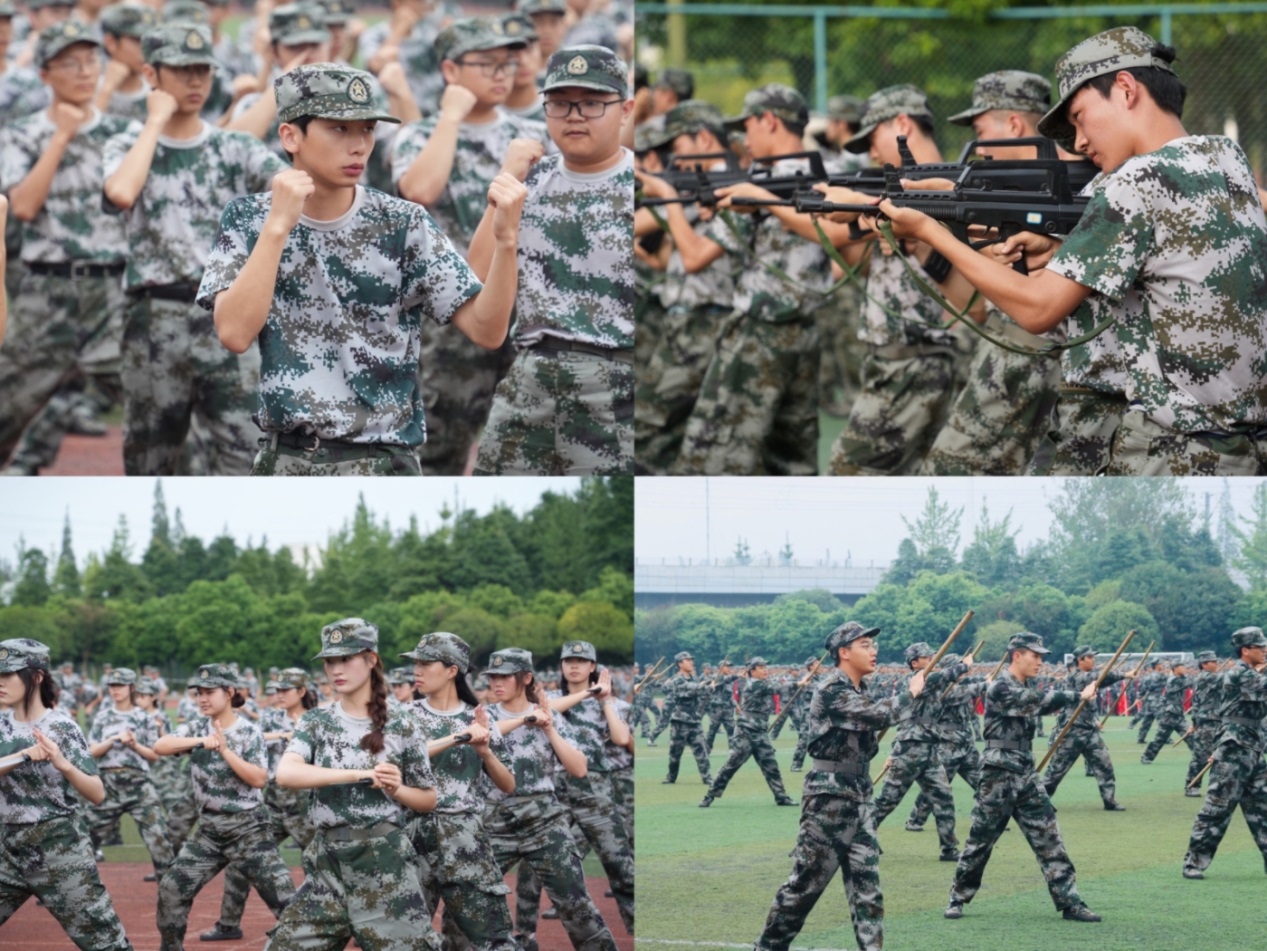 庄严的升国旗仪式后,军训汇报演出正式开始。分列式表演中,同学们军姿挺拔、动作规范、口号响亮;在匕首操、军体拳、队列操展示中步履矫健、张弛有序、气势威武。在旗语阵列展演中,同学们通过移形换位、呼唤应答、手势、旗语精彩的呈现了“党徽”“火车头”“校训”“校风”等图案与字样,回顾了党史与校史,展现了新时代大学生奋发向上的精神风貌,赢得了大家的阵阵掌声和喝彩。历经14天军事训练的同学们,眼神坚定、军姿挺拔、意志坚毅,以不畏苦累、接续奋斗的优良作风,圆满完成了各项训练任务。