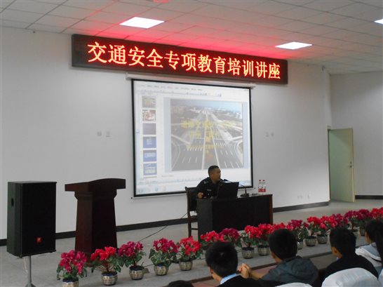 为增强学生的道路交通安全法律意识,了解掌握道路交通安全常识及道路交通事故处理规程,2016年1月6日,保卫处特邀郫县交警大队张林警官,在学术报告厅举办交通安全知识讲座,对学校近300名新生进行交通安全专项教育培训。