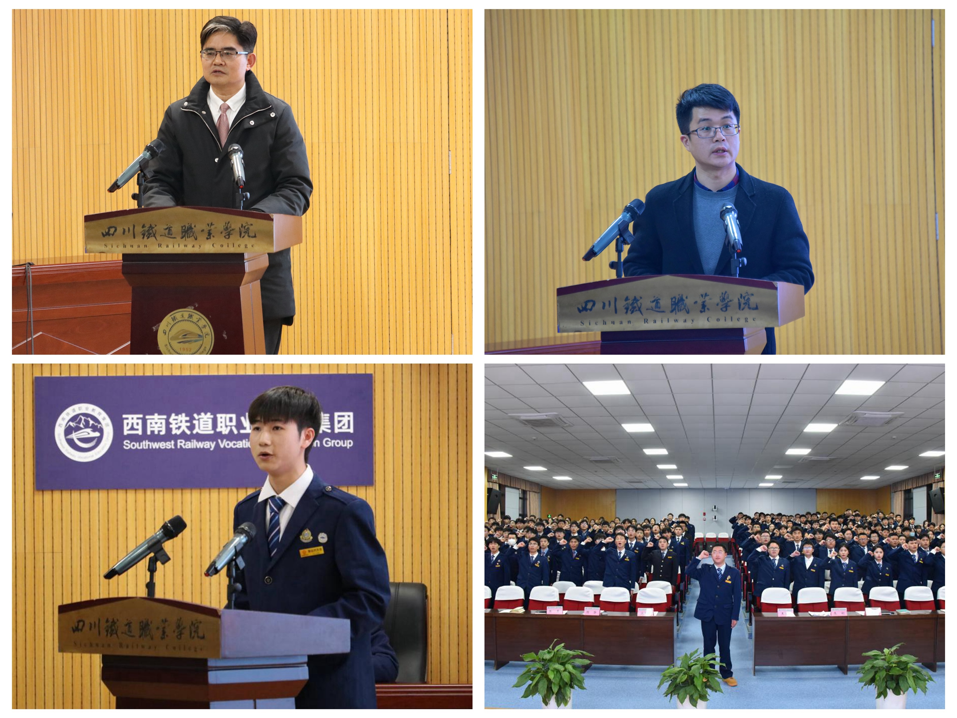 池秋平对参加春运社会实践暨志愿服务的全体师生表达了亲切的问候和新年的祝福,总结了十年来学校依托举办轨道交通专业的鲜明办学特色和铁道行业企业优质资源,学校先后组织5000余名师生参与春运志愿服务,积极培育和践行社会主义核心价值观,在熟悉铁路、深入社会、了解民情中取得的显著育人成效。池秋平向广大志愿者提出三点希望和要求:一是在实践中不断提高自身综合素质,提升纪律意识和服务水平。二是在实践中展现川铁学子良好风貌,以实际行动践行“厚德力行、博道通术”的校训,弘扬“勤奋、严谨、开拓、求实”的校风。三是在实践中遵规守纪树牢安全意识,牢固树立“生命至上,安全第一”的理念,服从学校和实践单位的双重管理。