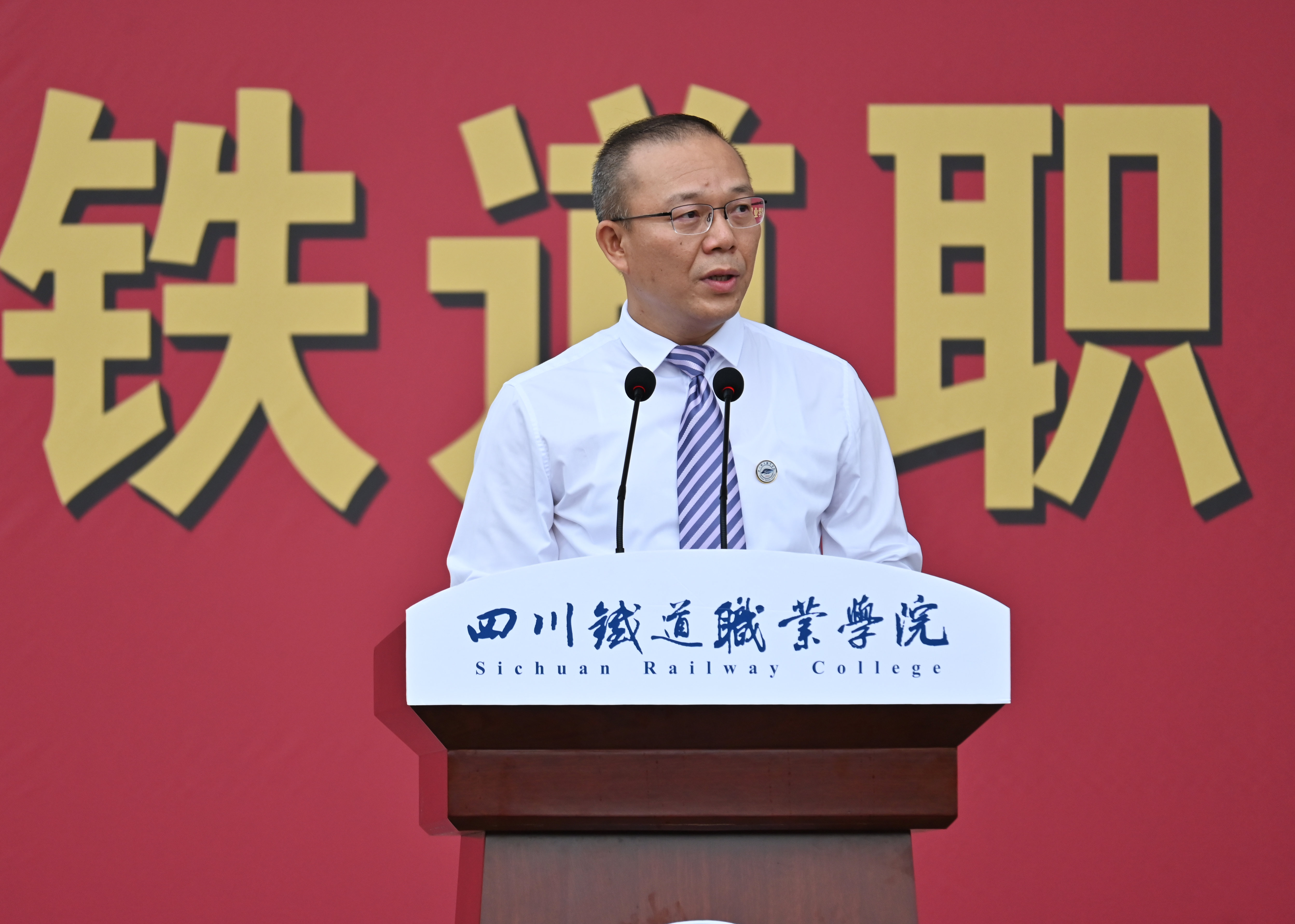 老生和新生代表同台献词,并带领全体新生庄严宣誓。他们掷地有声的献词,鼓舞着新同学们接续奋斗,奋楫笃行,再创佳绩!“立报国强国大志向,练就过硬本领,传承川铁精神,勇担复兴重任,……”铿锵有力的誓言喊出接续川铁荣光,奋楫启航做挺膺担当奋斗者的青春强音。