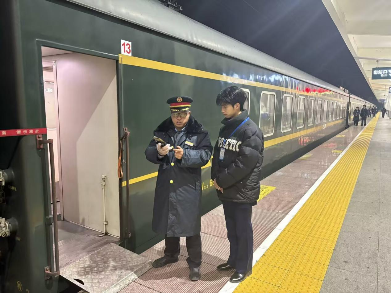 制造23T2陈永 作为一个在温暖湿润的南方成长起来的孩子,我此前从未涉足北方大地,而此次春运跟车志愿服务活动中,我有幸成为北京车队的一员,这不仅是我首次踏上北上的旅程,更是一次心灵与视觉的双重洗礼。我深切地感受到了列车员工作的繁琐与细腻,那是一种需要时刻保持警觉,将“安全”二字镌刻于心、实践于行的神圣职责,这份职责,如同一道坚固的防线,守护着每一位归心似箭的旅人,让他们的旅程更加安心、更加顺畅。
