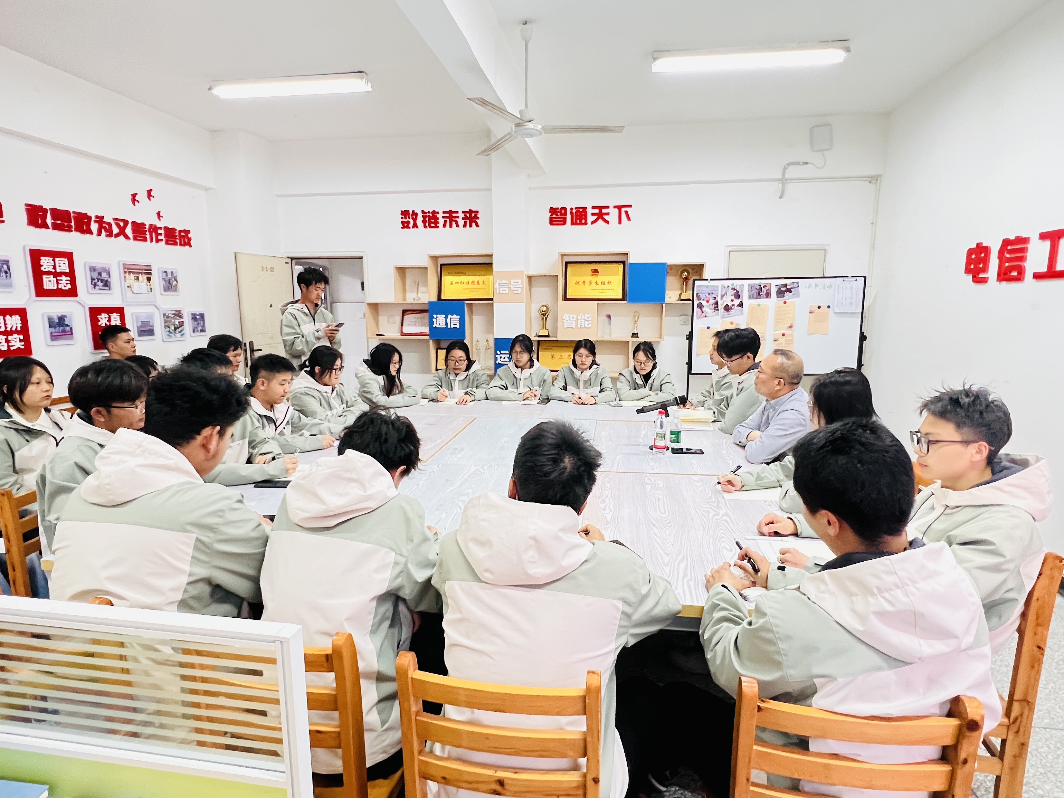 座谈中,贺兆轩亲切询问了同学们在校期间的学习生活情况,重点了解大家对即将就职岗位的专业认知和思想准备。来自铁路线路工3班的刘国鹏同学现场分享了《写给入职后自己的一封信》,信中饱含对铁路事业的赤诚情怀:“愿用脚步丈量每一寸钢轨,以匠心守护列车安全通行。”真挚的誓言引发在场师生强烈共鸣,展现了新时代青年扎根基层、建功立业的坚定信念。