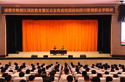 5月30日,为贯彻落实军委国防动员部、教育部、省大学生征兵办2018年大学生征兵工作会议精神,积极响应国防和军队现代化建设、提高兵员征集质量的号召,加强大学生应征入伍政策的宣传教育力度,激发学生参军热情,成都市郫都区国防教育暨征兵宣传进校园活动在我院举行。参会的有黄勇副院长、成都市郫都区人民武装部王璐副部长、院征兵工作领导小组成员、学院征兵工作站工作人员和学生代表,共1200余人。