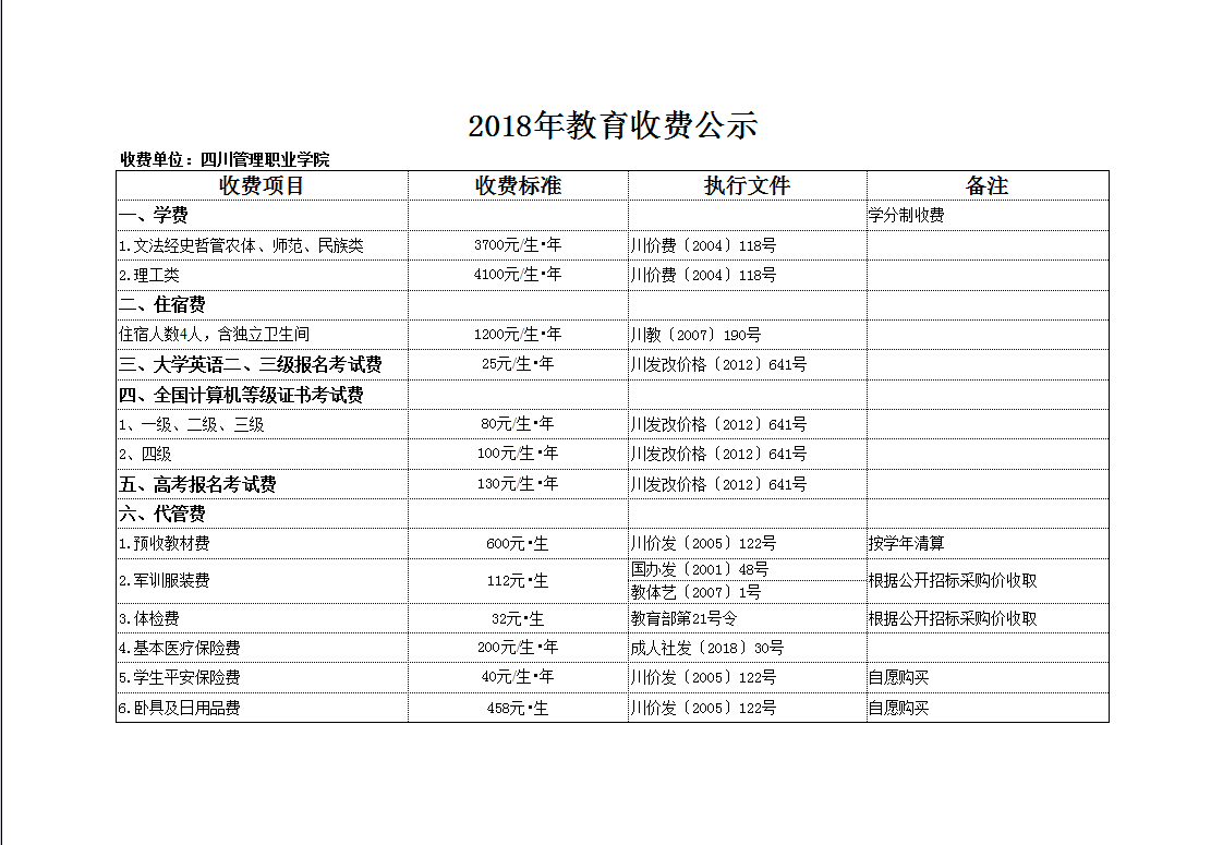 2018年教育收费公示