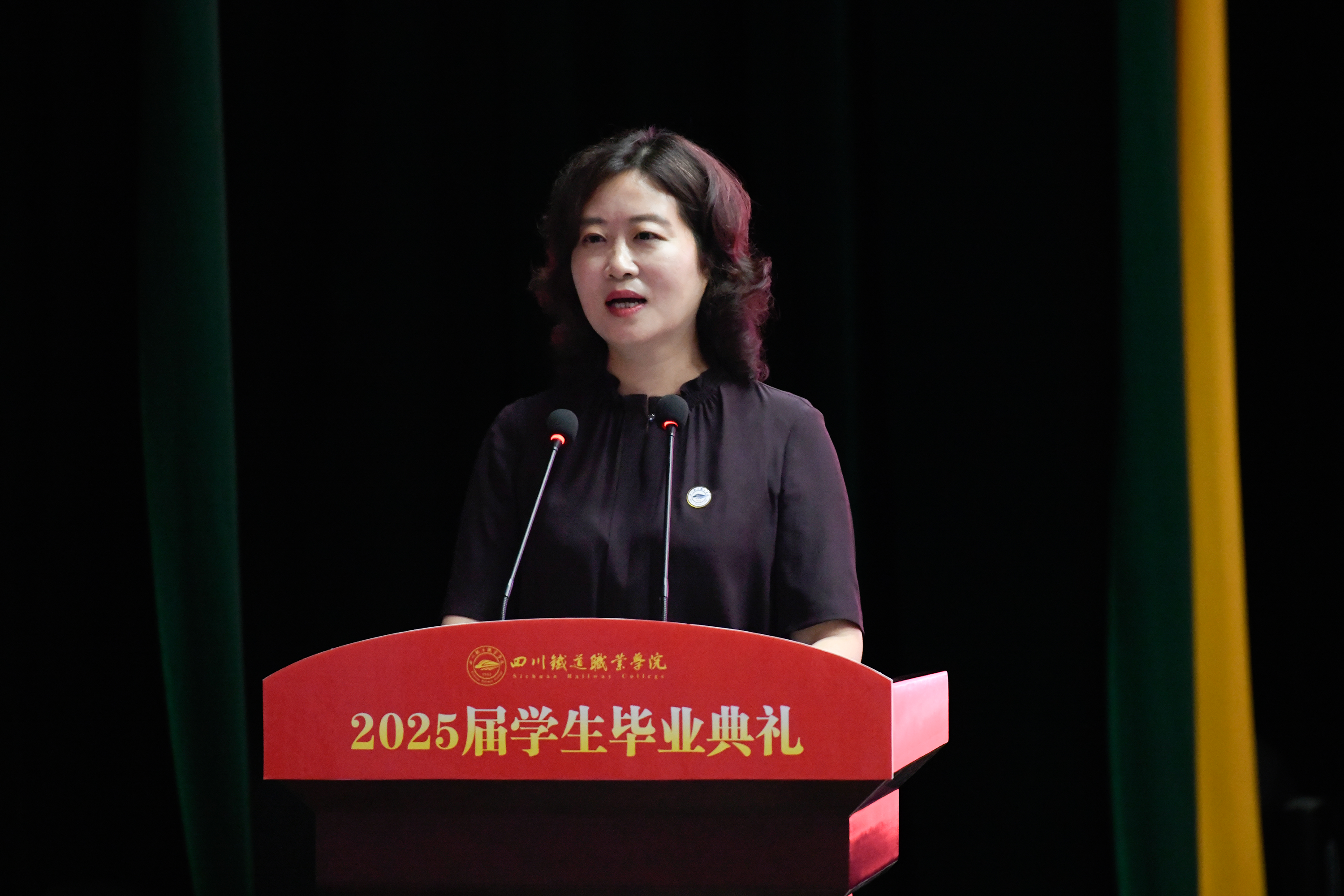 校长赖芳以“逐梦未来 奔赴山海”为题致辞,深情回顾了三年来学校与师生共同发展、共同进步的点点滴滴,表示2025届毕业生入学时恰逢学校70周年校庆,见证了川铁七秩芳华的光辉与厚重,亲历了七秩荣光的延续,也在这段历史中镌刻下了成长的印记。临别之际,她作为师长为毕业生送去叮嘱,勉励毕业生要修心立德,涵养“行业热忱、精湛技艺、持续创新、安全责任”的大师素质和“苟利国家生死以”的担当,在向上向善中涵养家国情怀;要审时顺势,牢记“下学上达、与时偕行”的学校精神,在拥抱时代中积蓄蝶变力量;要力戒浮躁,坚信“长期主义”的力量,在厚积薄发中坚守如拙匠心;要勤业强术,将“厚德力行 博道通术”的校训化作前行道路上的火种与灯塔,在升华平凡中追求卓越人生。
