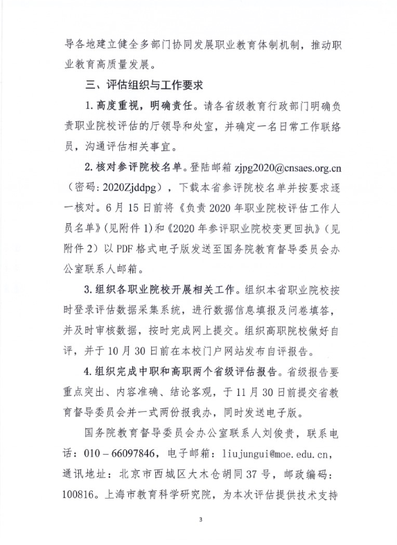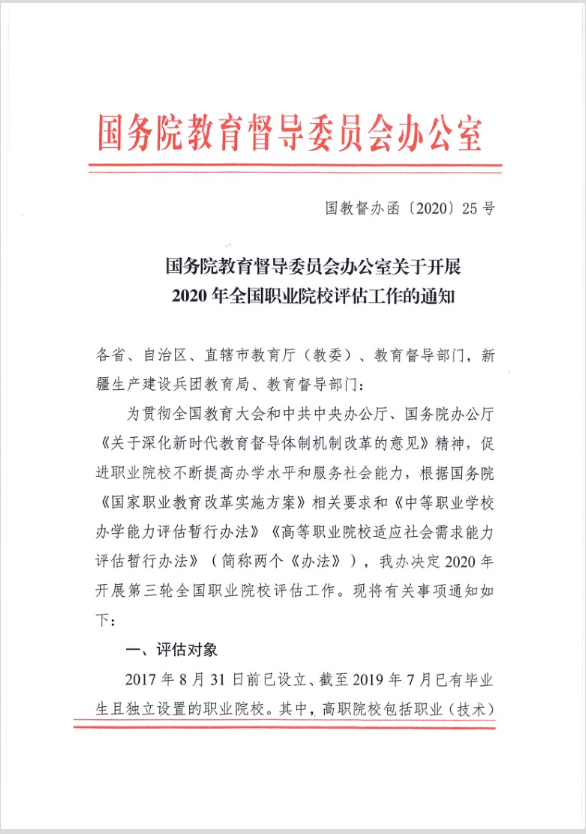 国务院教育督导委员会办公室关于开展2020年全国职业院校评估工作的通知