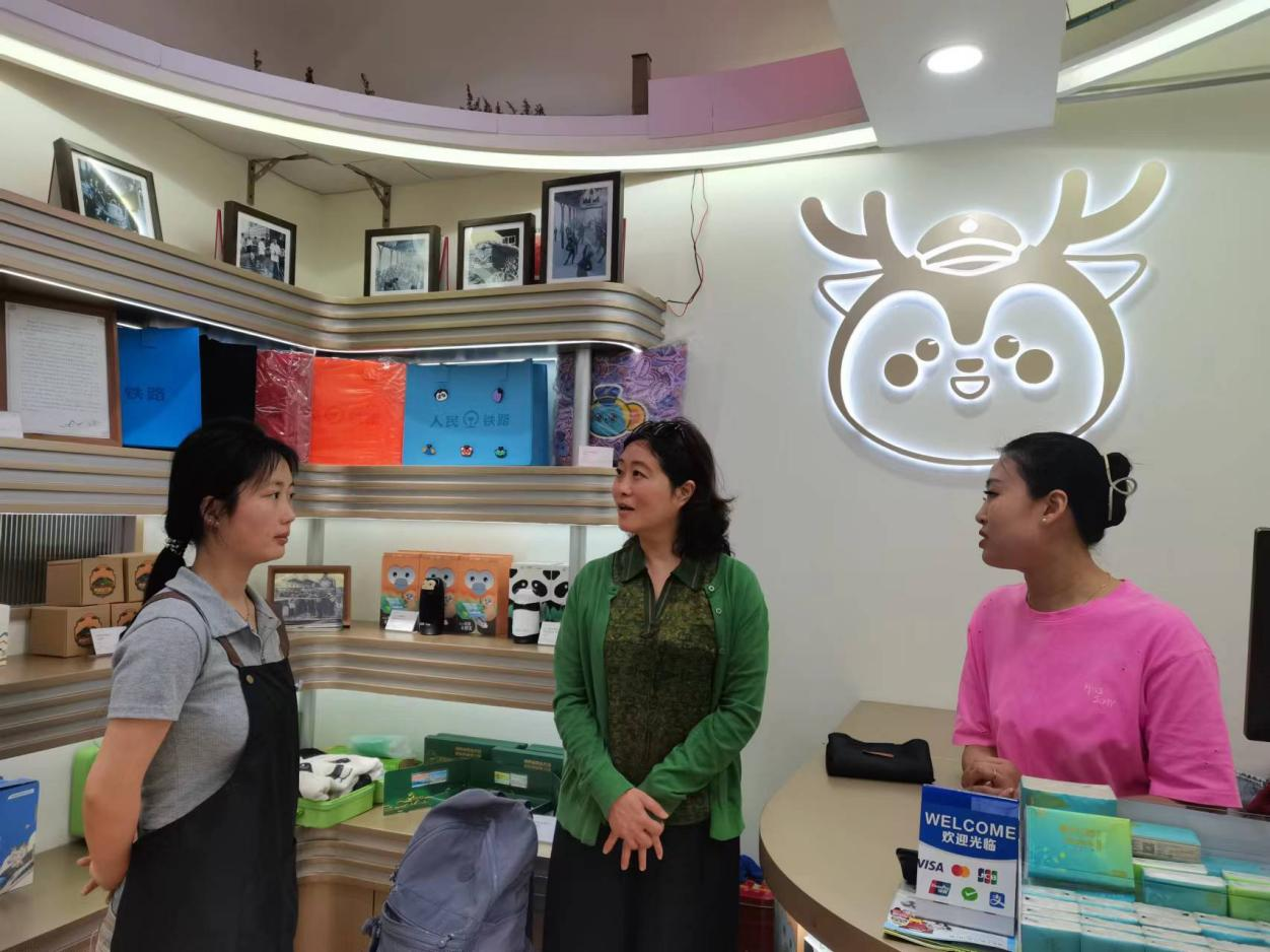 赖芳在前往宜宾的途中,特意前往成都铁路文化传媒有限责任公司旗下的“1435文创”成都东站门店,亲切看望了伟德国际实习学生,并详细询问其实习情况,展现了学校对学生实践教育的重视与关怀。