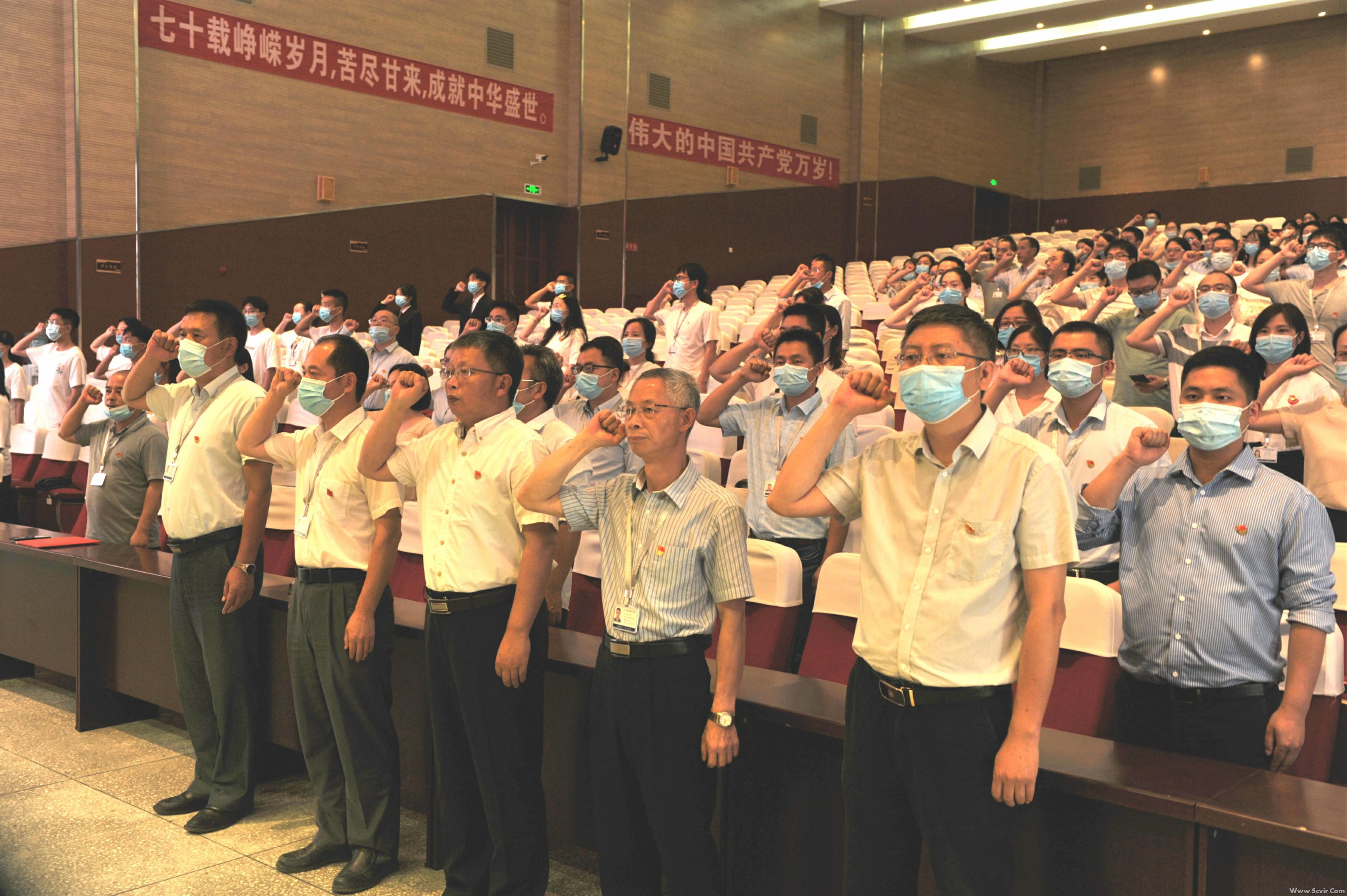 全体与会党员高举右拳,面向党旗,重温入党誓词,声音洪亮、字字铿锵,充分彰显了我院师生党员的责任担当和永远跟党走的信心和决心。