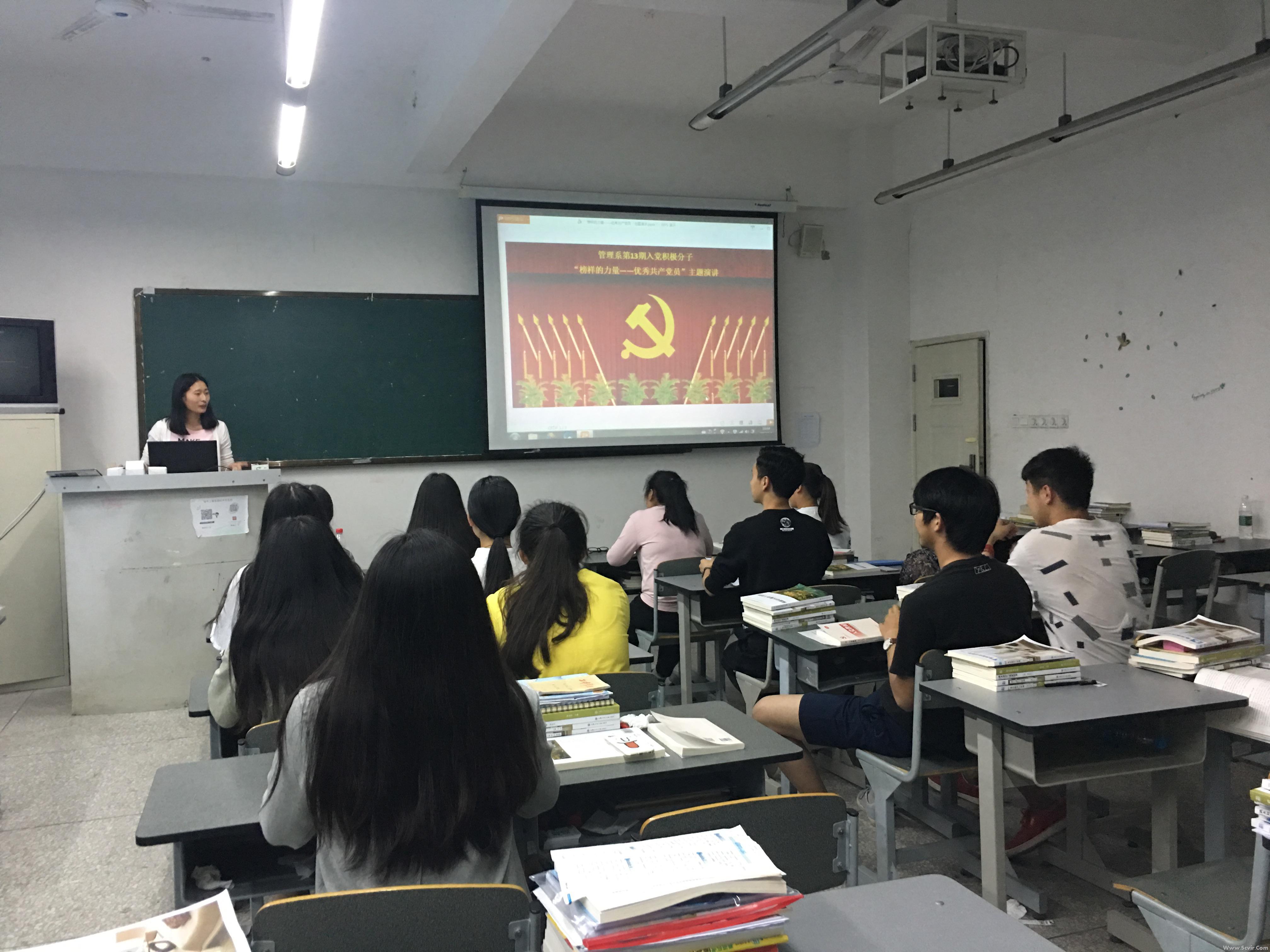 为继续深入推进我院“两学一做”学习教育活动,以身边先进典型为榜样,激励入党积极分子,培养后备力量,2017年5月1日晚,管理系在2513教室举办了“榜样的力量”主题演讲,辅导员马琴老师、第十三期入党积极分子培训班第五组成员参加了此次活动。