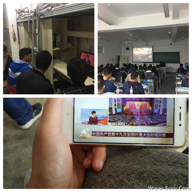 图:学生采取寝室分散收看、教室集中收看、个人新媒体收看等多种形式关注大会直播。 在开幕会直播结束后,广大党员干部和师生员工还通过专题学习讨论会和手机新闻、央视客户端、微博热点、QQ群、微信群、雨课堂等新媒体渠道,及时获取大会资讯,积极参与相关话题讨论,反响热烈。