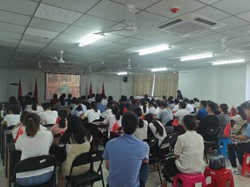最后,在学院党委书记邓秀成的带领下,在场所有党员同志重温入党誓词,共同歌唱《没有共产党就没有新中国》。