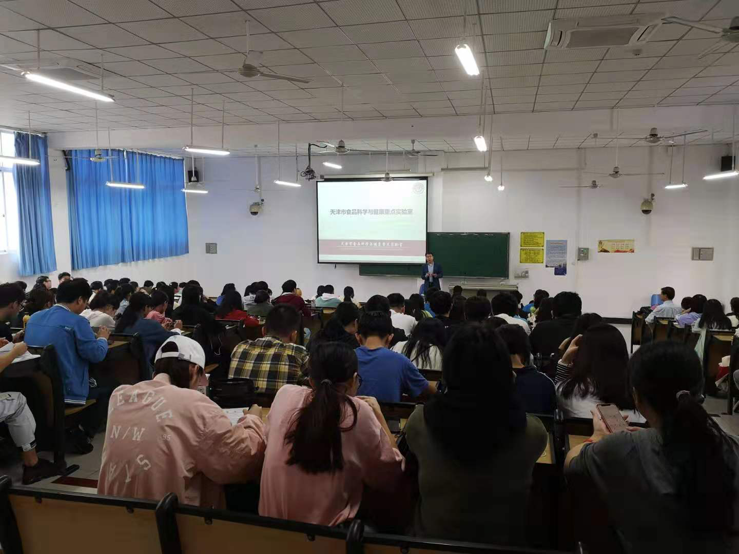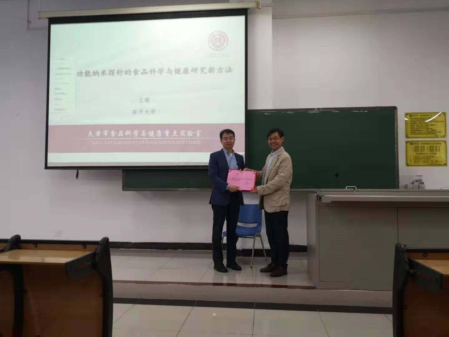 2019年1月6日,南开大学杰出青年获得者王硕教授应邀参加BB贝博艾弗森原官方网站冬季小学期讲座,为2018级食品大类本科生讲授“基于功能纳米探针的食品科学与健康研究新方法和基于实时成像技术的食源性益生菌体内示踪研究”。BB贝博艾弗森原官方网站院长李从发教授和副院长陈文学教授出席此次授课,李院长代表学院致辞,对王硕老师的到来表示热烈欢迎,并向王硕老师颁发“BB贝博艾弗森原官方网站冬季小学期外聘专家”证书。