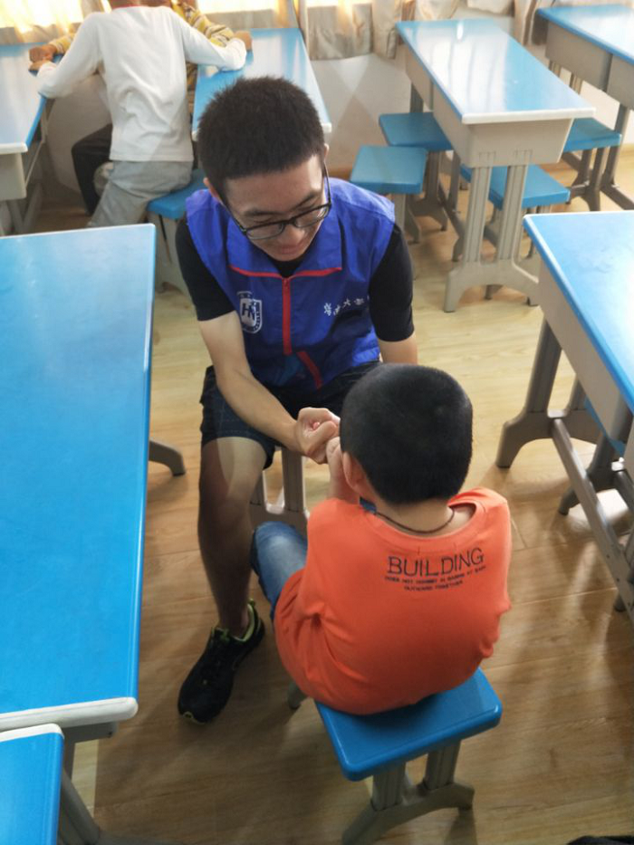 2018年4月24日下午,BB贝博艾弗森原官方网站食品学院青年志愿者协会如常前往天翼特教中心,在课堂上协助老师们管理课堂纪律,下课时间与自闭症和智力障碍的儿童一起做游戏。支教的历程中,当遇到其他组织的青年志愿者开展支教活动,双方又会团结协作,一起帮助机构的老师完成教学任务。虽然每次的活动内容基本一致,但是志愿者们面对的孩子却是不一样的,所以志愿者们都会以一个严肃认真的态度去面对每一位自闭症和智力障碍儿童,为他们带去真心实意的关怀。